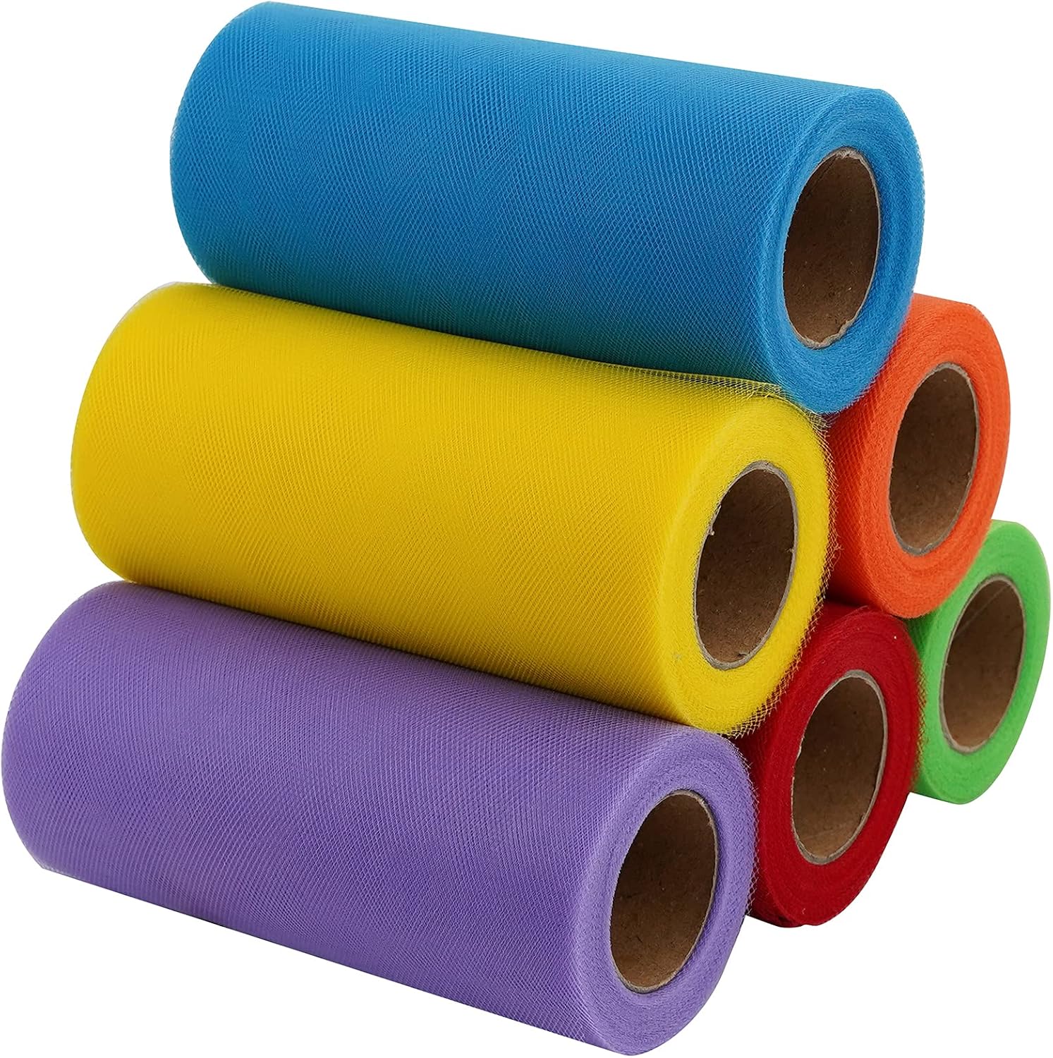 MEEDEE Rainbow Tulle Ribbon 6 Colors Roll Tulle Fabric Rainbow Spool Ribbon for Tutus Wedding Decorations Party Decorations Gift Wrapping Skirt Dress (6 inch by 25 Yards/Roll)
