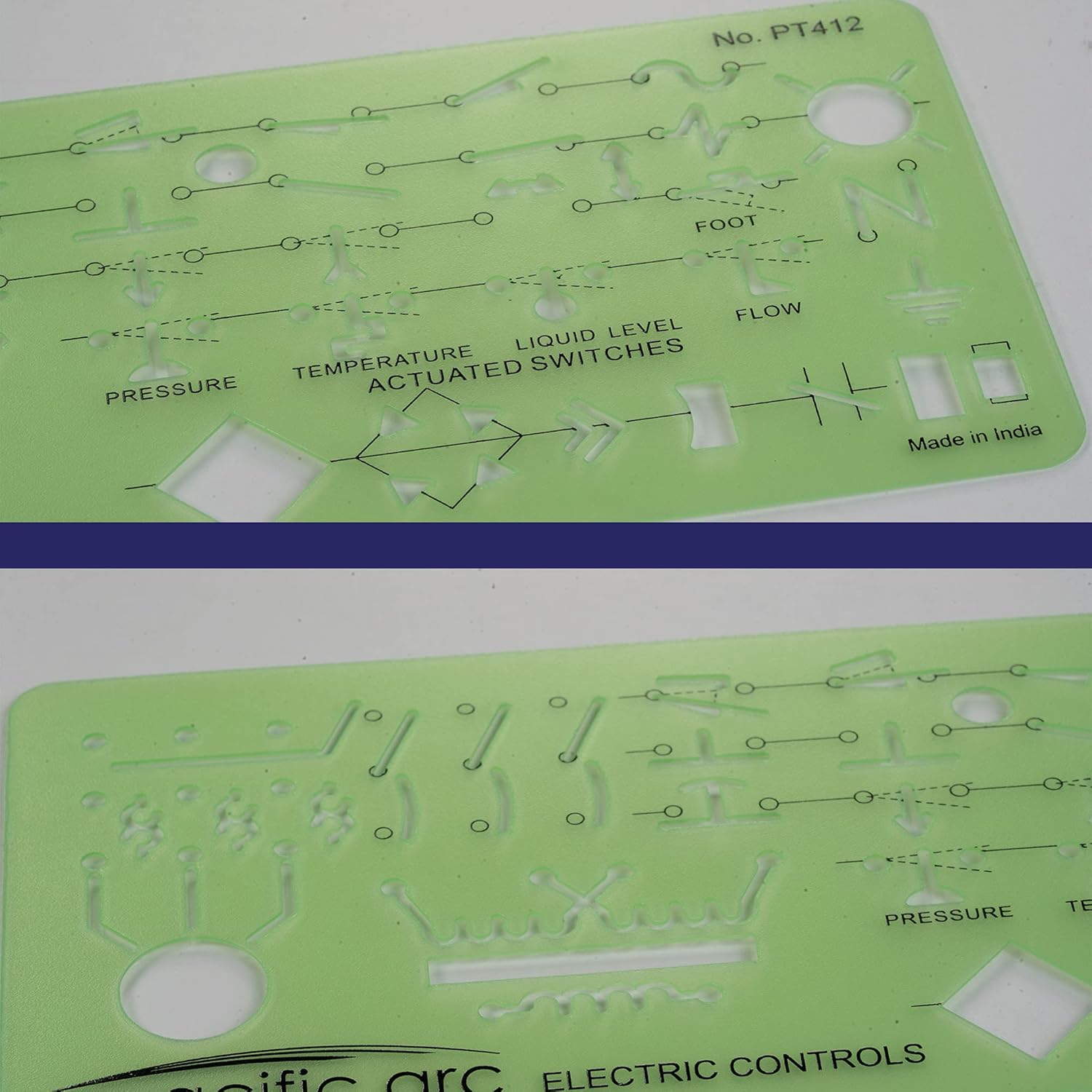 - COMPREHENSIVE TEMPLATE - Taking symbols from ANSI Y32.2, this template features all the major electrical symbols for contacts, switches, contactors, and relays. Easily design any diagram or detailed plan without any problems.