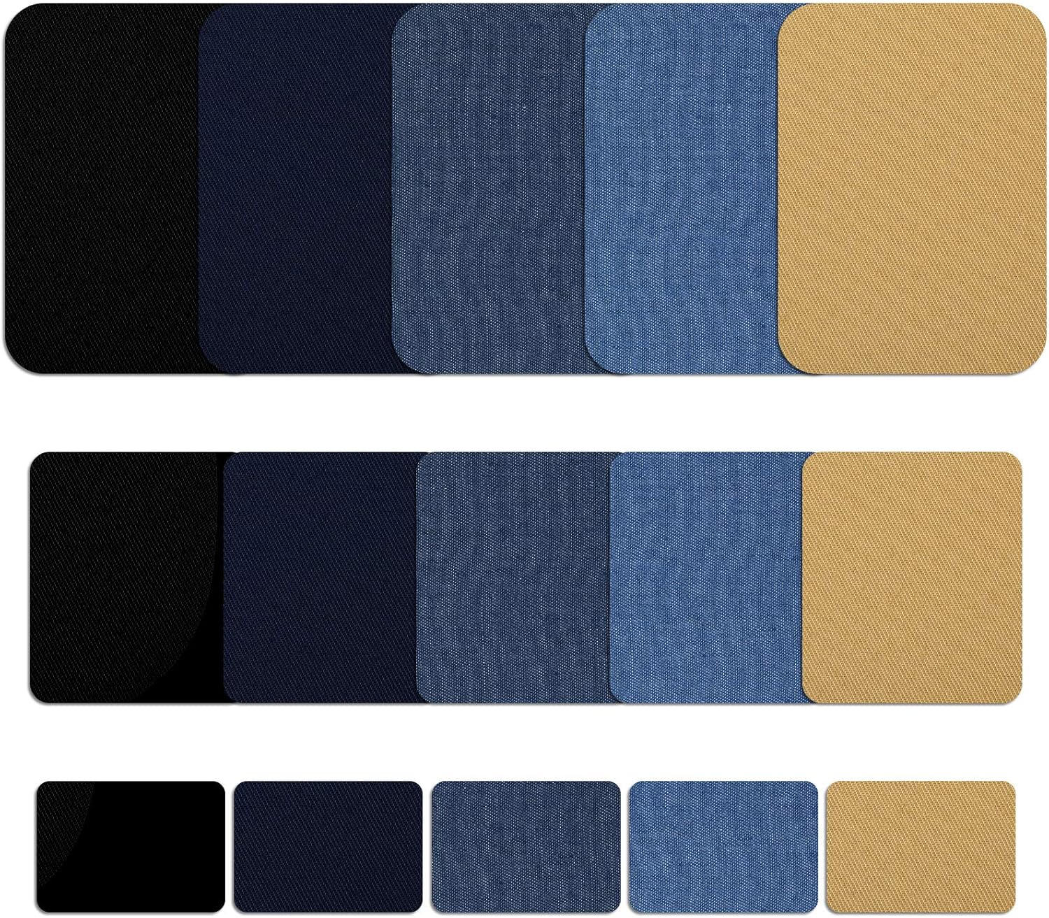 30 Pieces Iron on Fabric Patches Fabric Repair Patches Twill Clothing Repair Patch Kit for Jacket Clothes, 3 Sizes, 5 Colors (Black, Navy Blue, Dark Denim, Light Denim, Khaki)