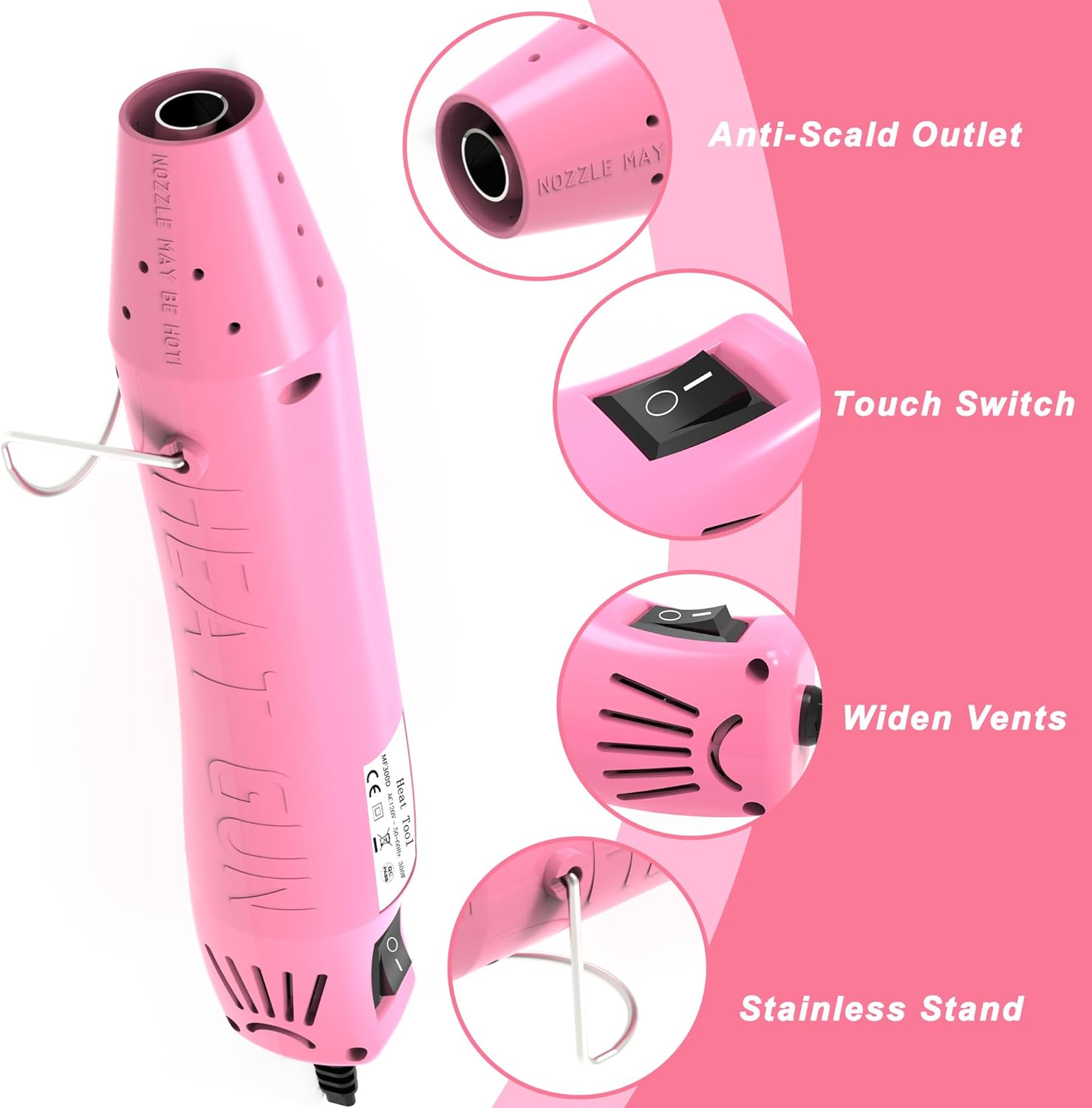 Heat Gun, Mini Heat Gun for Shrink Tubing, Portable Heat Gun for DIY Crafts, 300W Heat Air Gun with Reflector Nozzle, Shrink Wrap Gun Tool for Shrink Packaging PVC, Drying Paint, Clay - Pink
