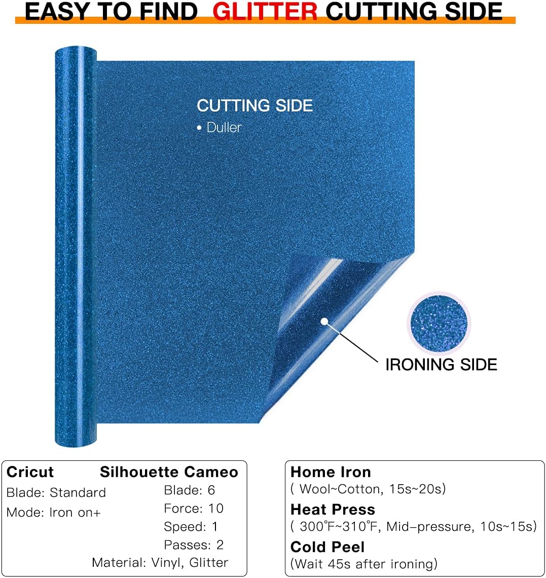 - 【10 INCH x 8 FEET】HTVRONT glitter htv are easy and convenient to cut into different size of art designs or logos or letters and perfect for 12''x12" and 12''x24" cutting mats. Our glitter iron on vinyl are compatible for all cutter machine, also uses fine glitter, which is smooth, easy to layer and apply. All the glitters are sealed in and never residue