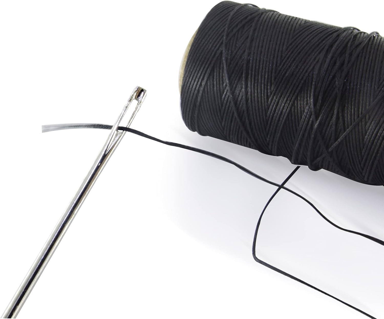 Marcobrothers 10 inch 2 pcs Professional Upholstery Large Eye Long Needle,Easy to Thread,with 1 roll 284 Yard 150D 1mm-Width Leather Sewing Waxed Thread, Silver Black(MJ01-FBA-A0215201-MAXX1MR)