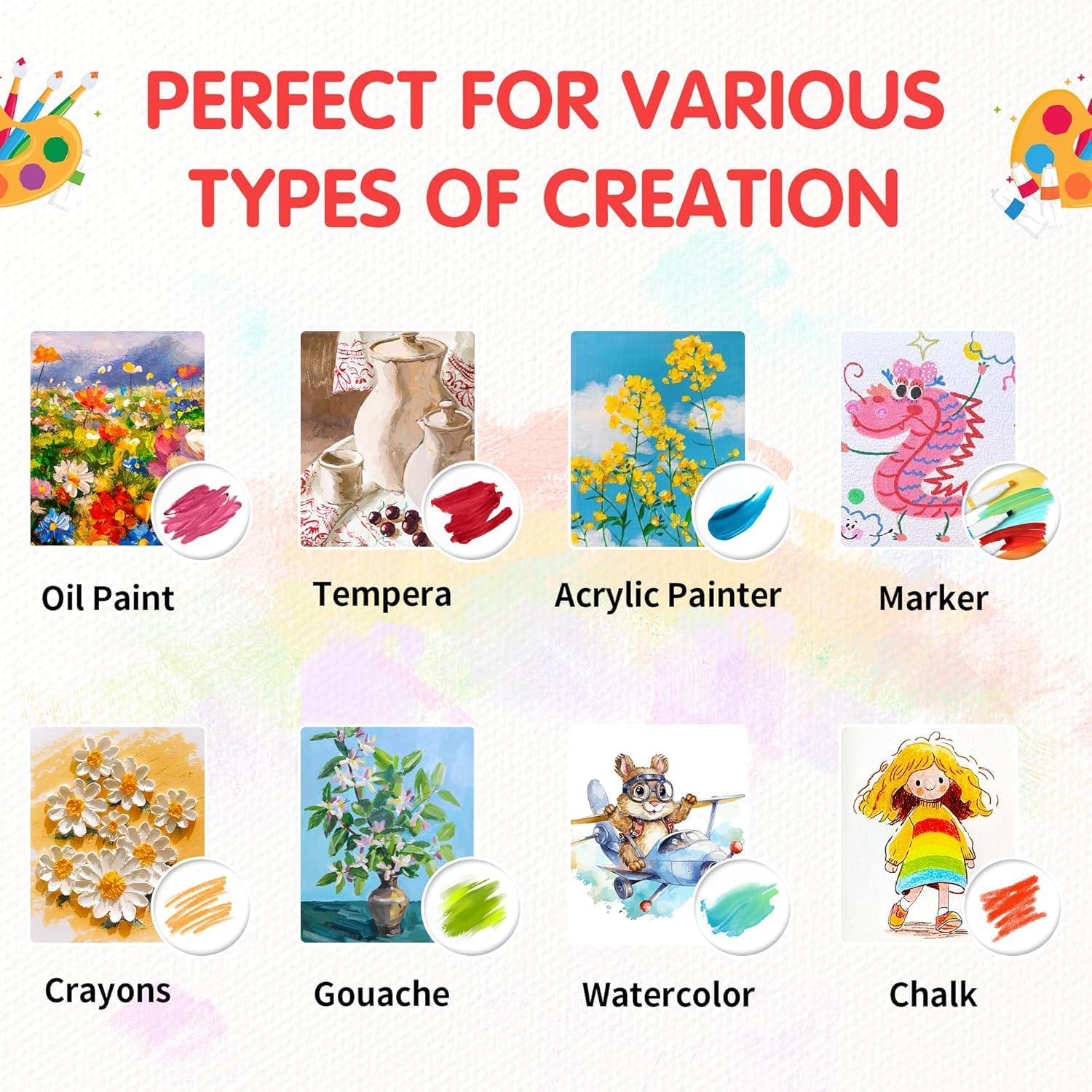 - IDEAL FOR: Artists,educators,students,beginners,amateurs,kids and professionals. Also ideal for DIY crafts and all decorative painting projects & more.【SUITABLE FOR】- These canvas panels can be used with acrylic,oil,tempera and other different painting media.