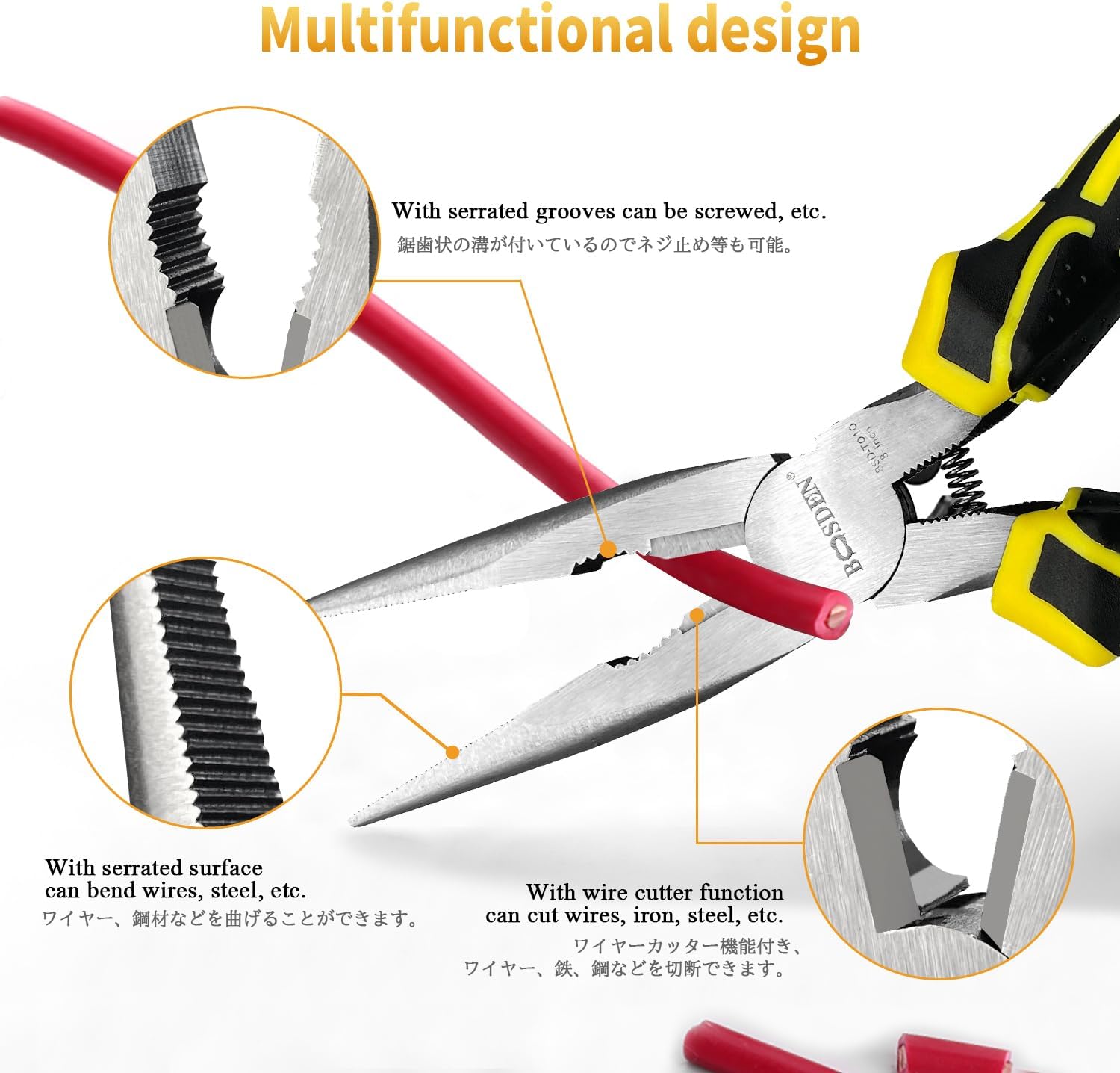 - 【Product material】This 8" needle nose pliers sets are made of high carbon steel, and have undergone high-frequency hardening treatment to provide strong and durable jaws and cutting edges, which will not become dull.