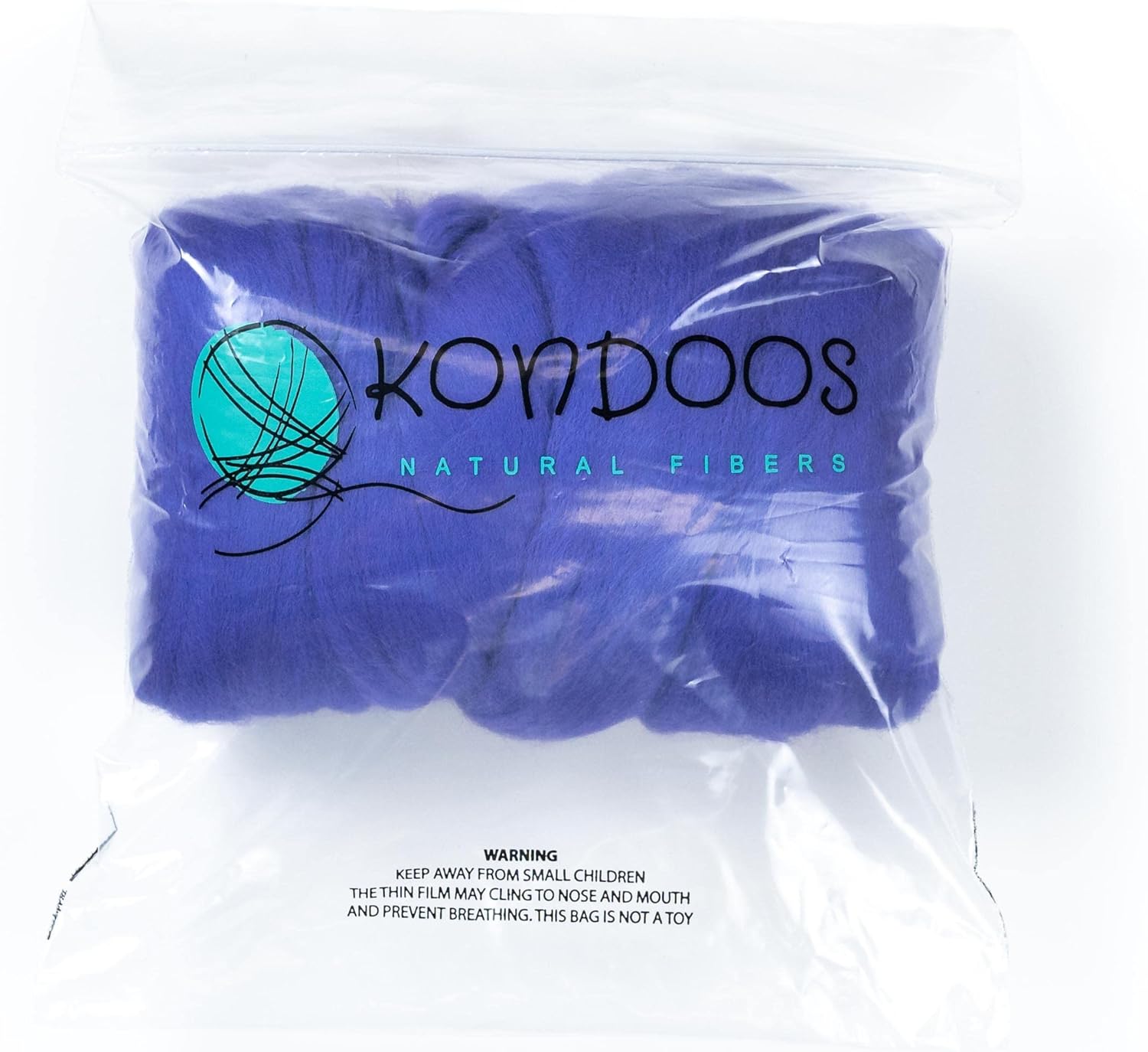 Kondoos Colored Natural Wool roving, 8 OZ. Best Wool for Needle Felting, Wet Felting, handcrafts and Spinning. (Purple)