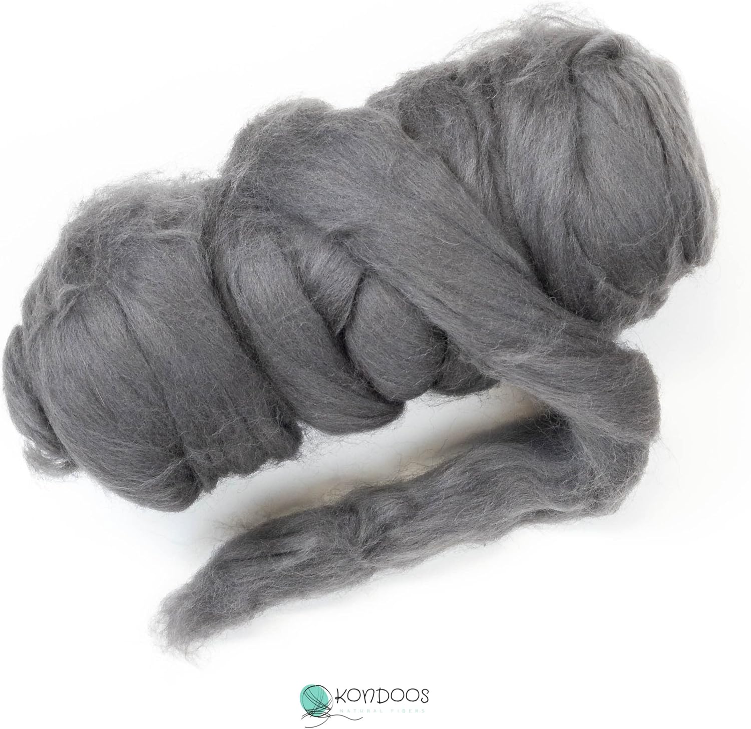 Colored Natural Wool roving, 8 OZ. Best Wool for Needle Felting, Wet Felting, handcrafts and Spinning. (Graphite)