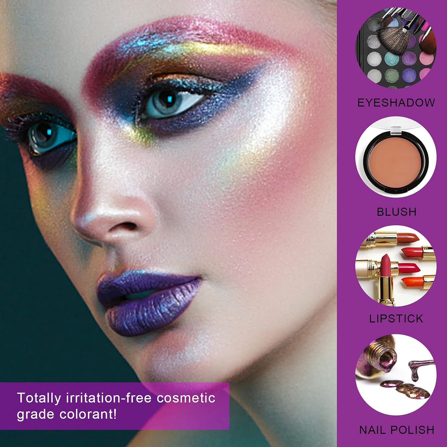 - 【WIDE APPLICATION】: Our natural cosmetic grade pigment will give a shimmering and pearlescent look to your handmade products, perfect for soap making, epoxy resin, candles, blush, eye shadow, bath bombs, nail polish, paint kits, art sets, lip gloss, acrylic and slime, and so much more!