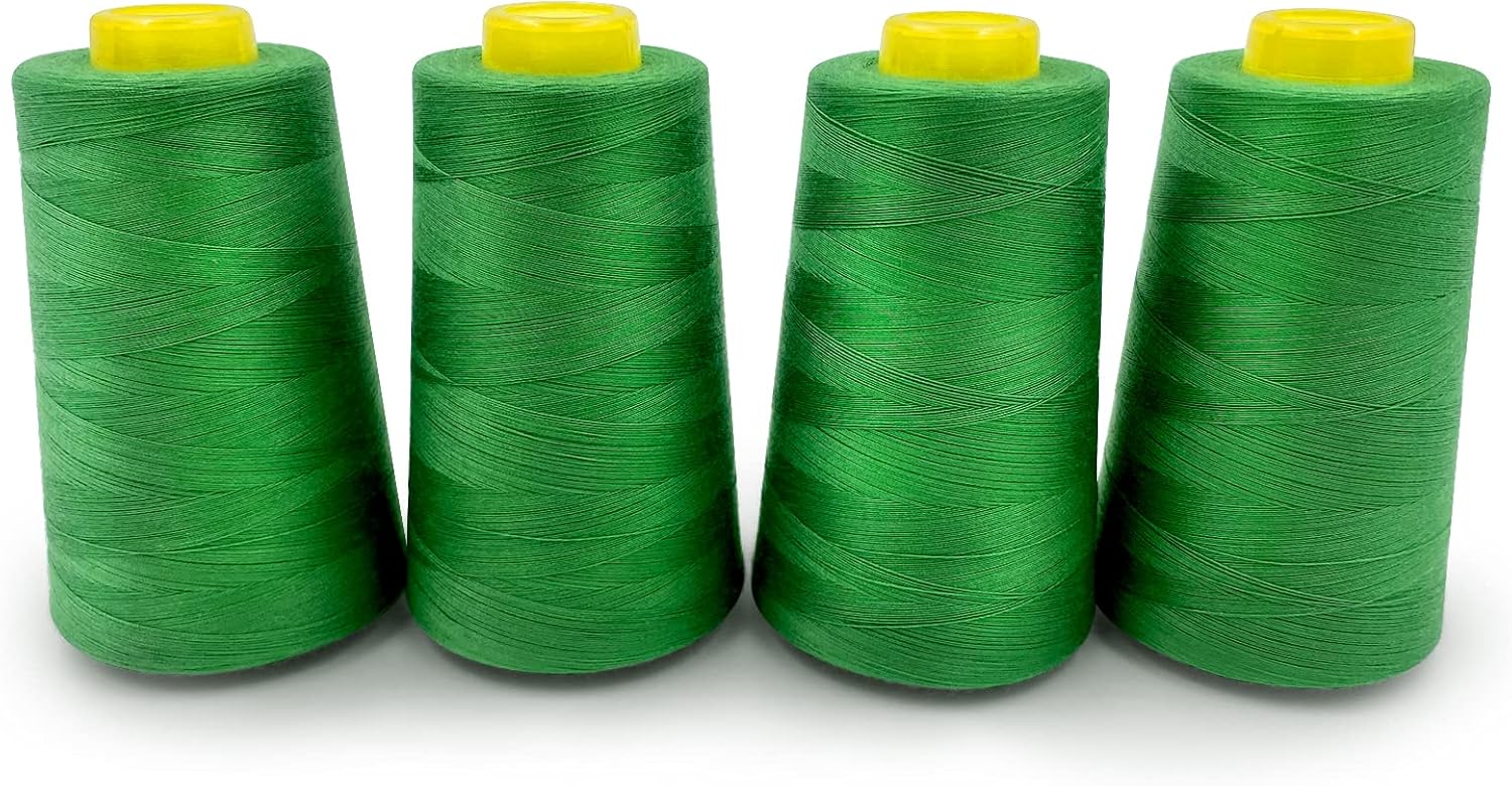 Tortoise 4 Cones of 3000 Yards Each Spool Thread for All Purpose, Serger, Overlock, Quilting, Sewing Machine - 100% Polyester - 40S/2 Green
