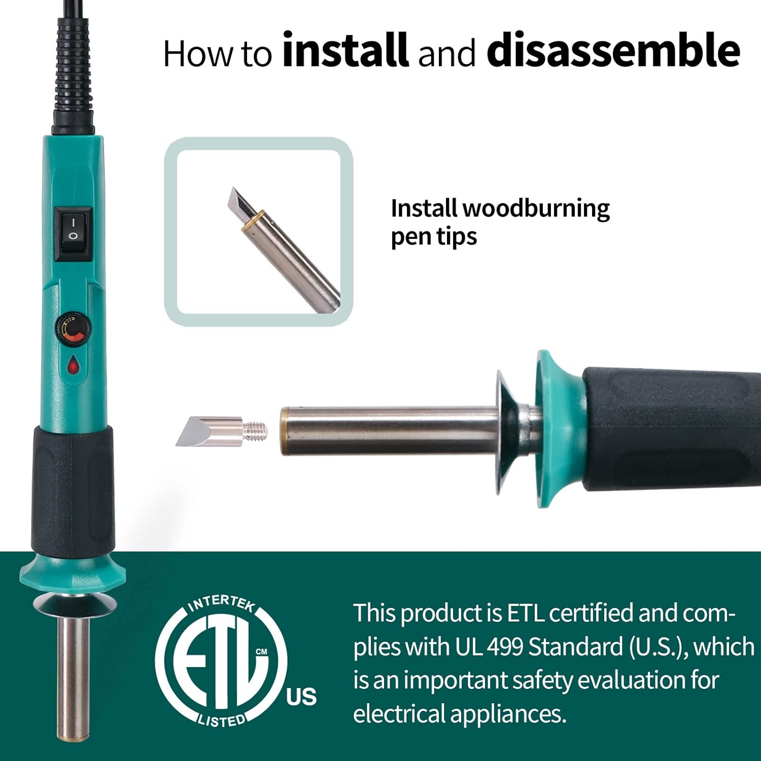 - Complete Pyrography Kit - We packed this kit with the basic items you’ll need to get started in pyrography, you can enjoy the fun of wood burning with a safe, adjustable, and lightweight wood burning tool. Caution: Tighten the pyrography tip, and remove the silicone cover before use