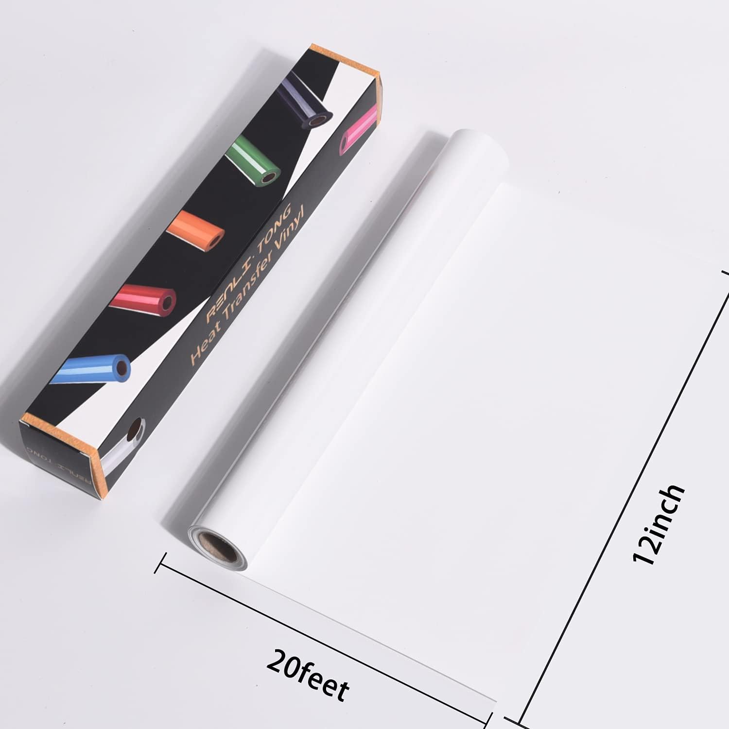 RENLITONG White Iron on Vinyl 12Inch by 20ft Roll HTV Heat Transfer Vinyl for T-Shirt HTV Rolls for All Cutter Machine - Easy to Cut & Weed for Heat Transfer Design