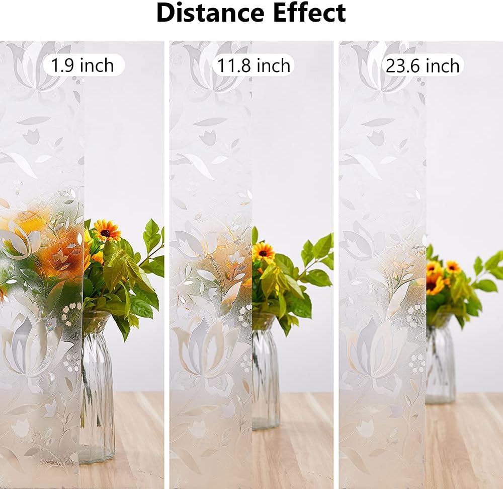 - Rainbow Tulip Pattern:Window privacy film designed of tulip pattern that, when installed, creates a strong rainbow visual effect when the sun shines, giving a unique effect to the window, as well as being an affordable alternative to heavy and expensive curtains or blinds