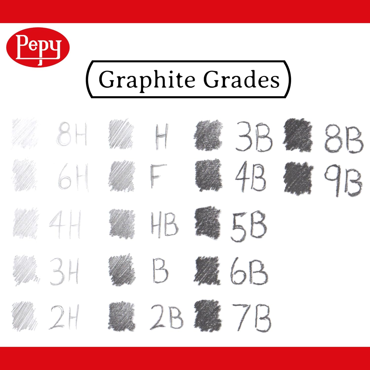 - VERSATILE GRAPHITE DRAWING PENCILS – Pepy Graphite Drawing Pencils; box of 12 pencils in a single hardness. Available in 17 different grades of hardness.