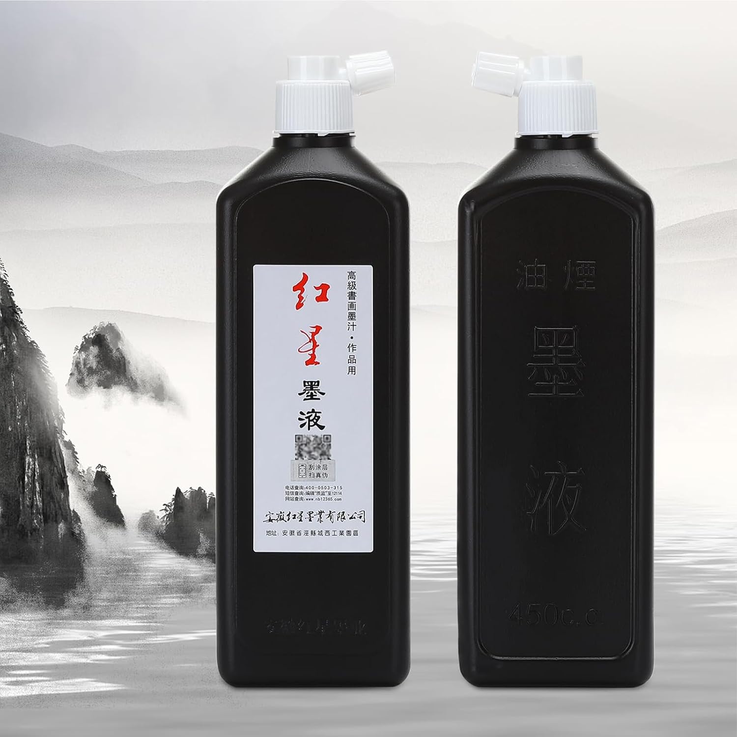 MEGREZ Chinese Calligraphy Brush Ink, Redstar Black Liquid Ink Sumi Ink for Writing & Drawing Practicing Japanese Calligraphy, Traditional Chinese Calligraphy Brush Ink, 15.8 OZ(450ml)/Bottle