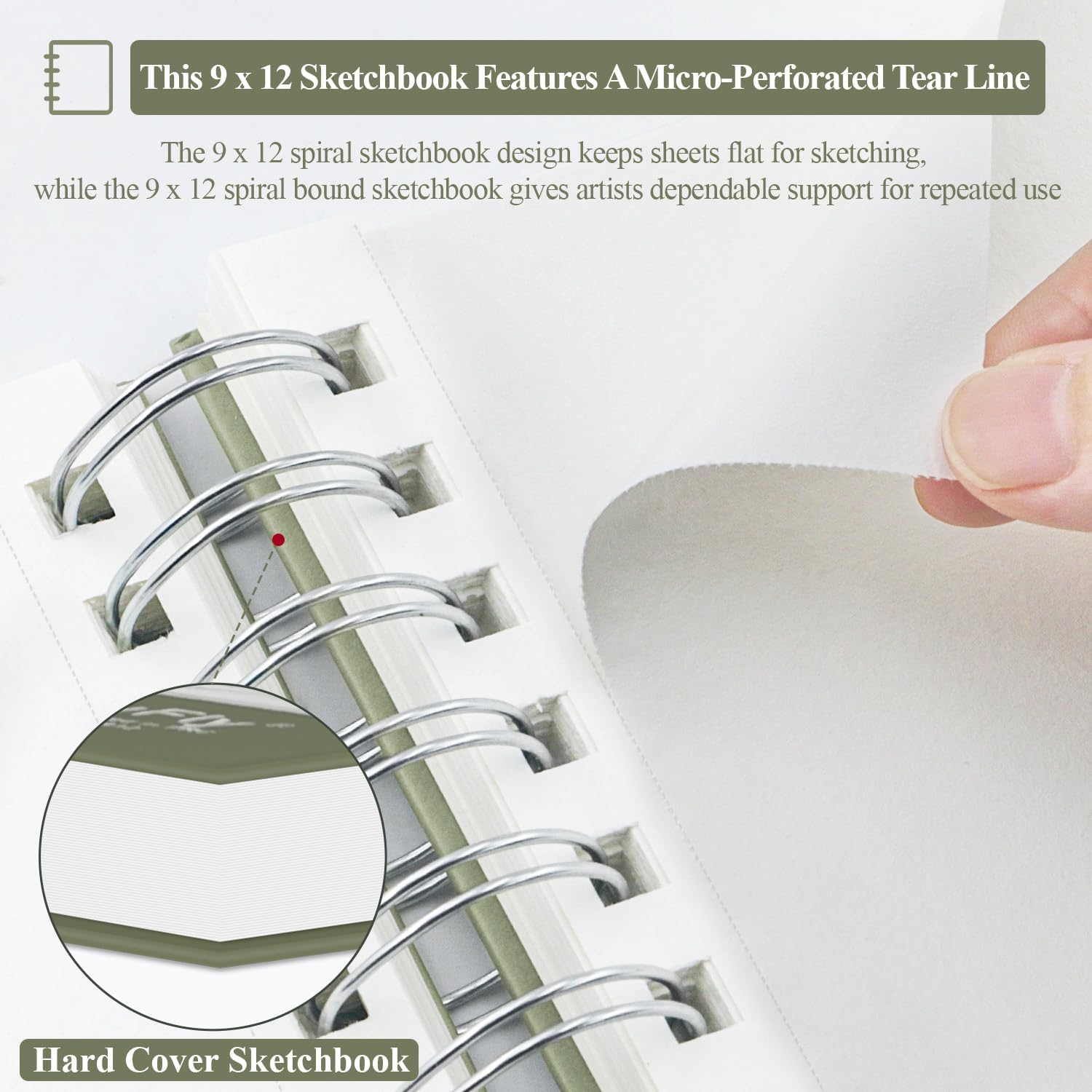 - SIDE SPIRAL-BOUND SKETCHBOOK, EASY PAGE TURNING β With a side spiral bind, all the drawing paper of this art sketchbook is firmly held together and can be easily flipped and kept on the back. The metal spiral bind of 9 x 12 sketchbook is sturdy and will not easily deform even after months of use, so you can feel free to draw your creations on the sketchbook for drawing, SuFly spiral sketchbook 9x12 can keep them long lasting.