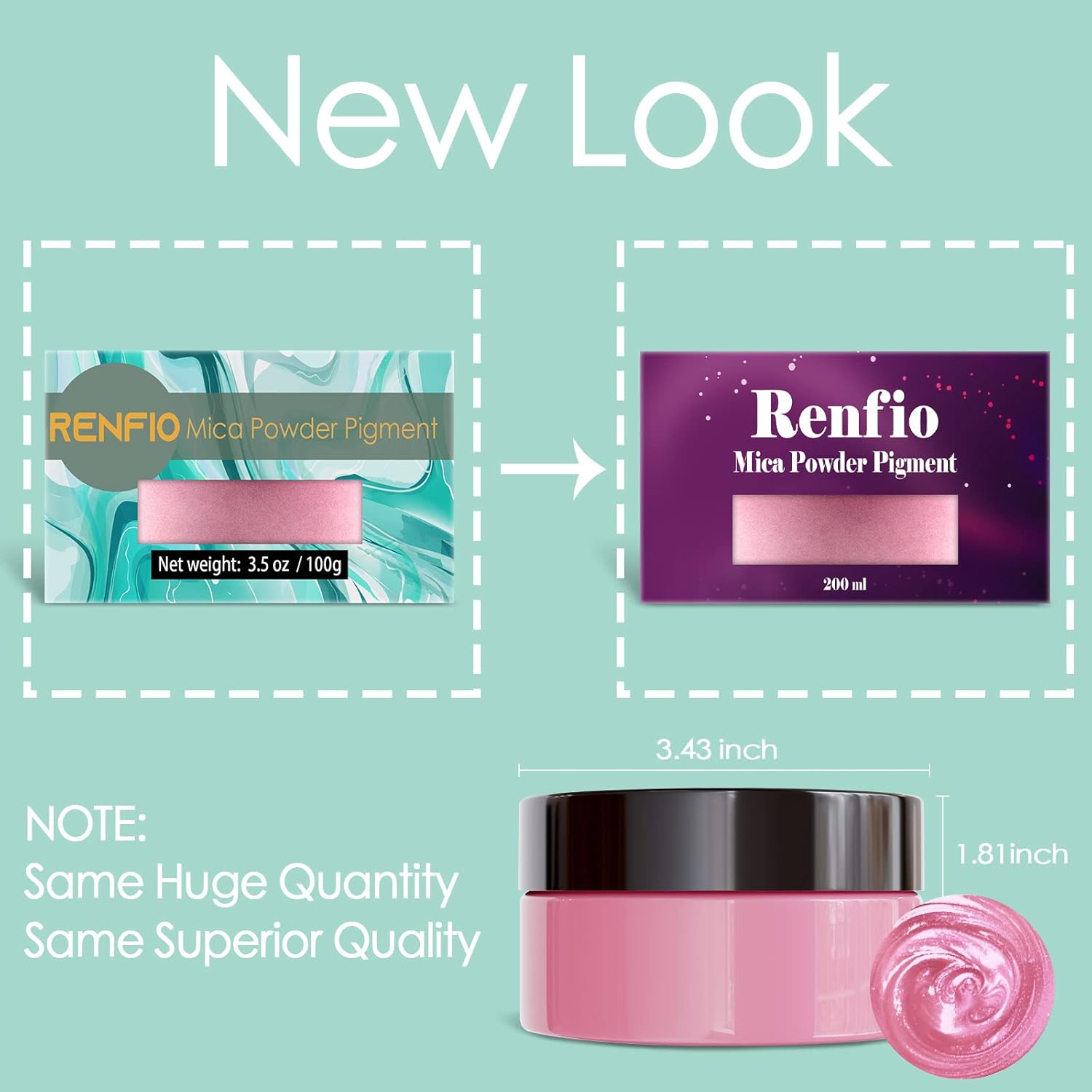 - ✅Big Weight With Spoon - Tired of buying mica powder in small packages? Renfio mica powder size is 3.5 Oz, 1 bottle can satisfy all your needs. Bring small spoon, easy to use mica powder, no cross contamination, no waste, and keep the table clean.