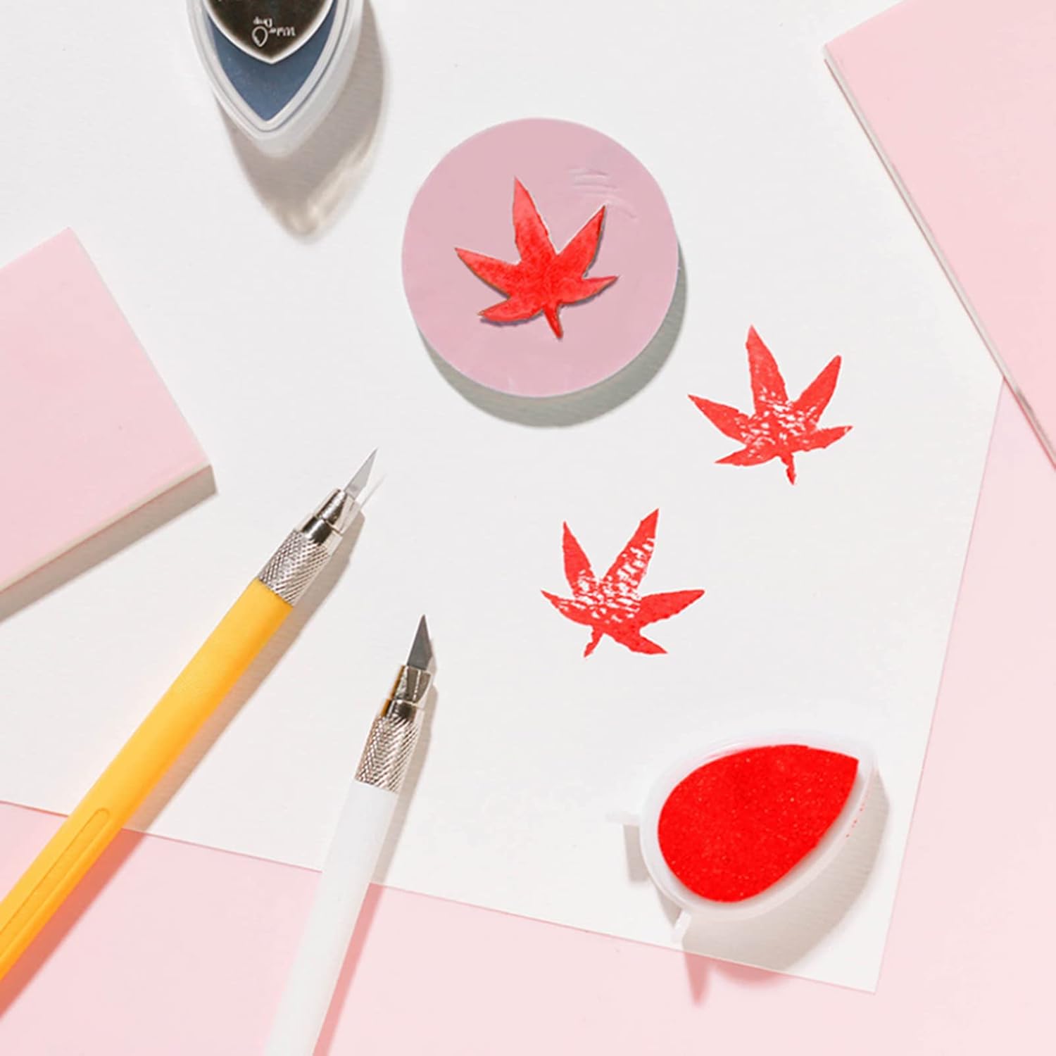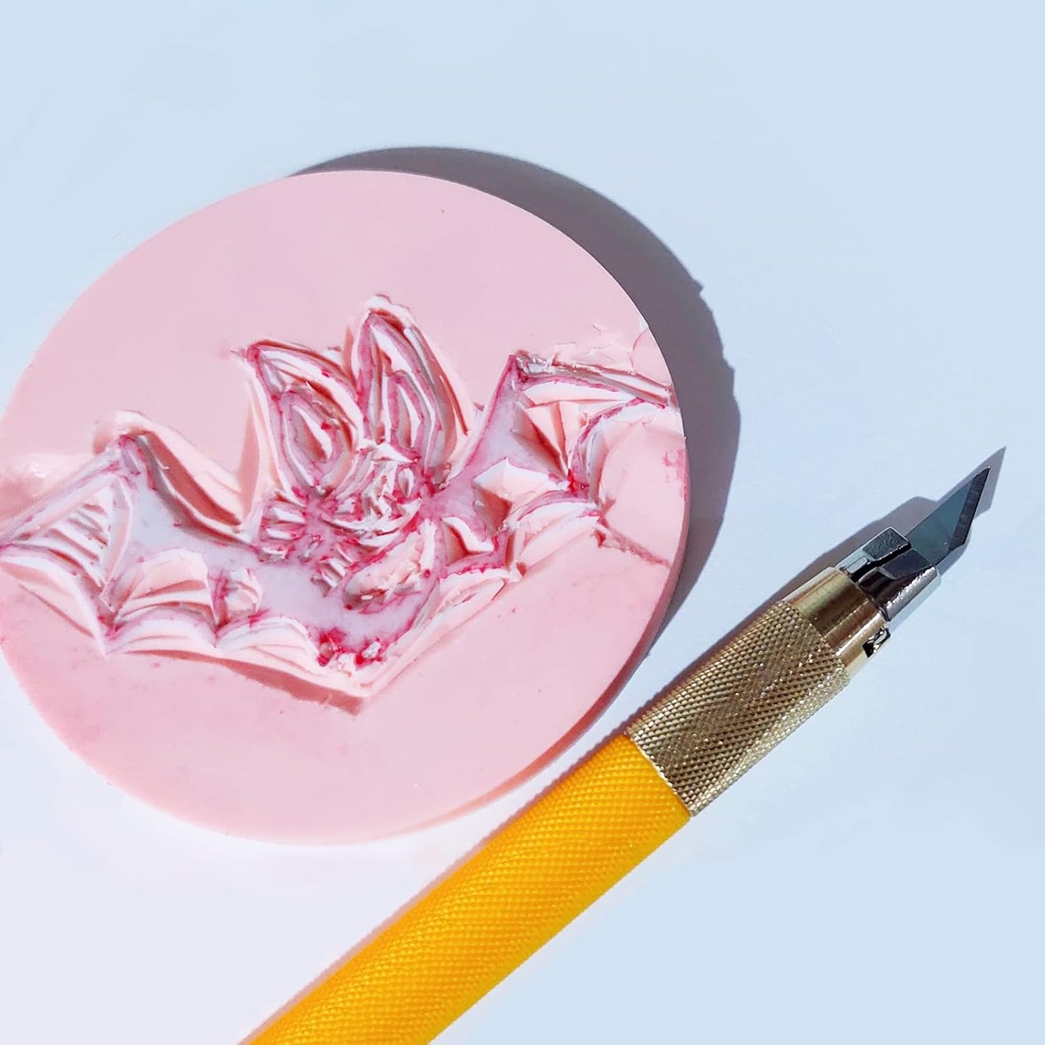 - Pack of 2 pieces pink rubber carving blocks; Each is measures 11.7" (29.7 cm) L x 8.3" (21 cm) W x 0.31" (0.8 cm) thickness.