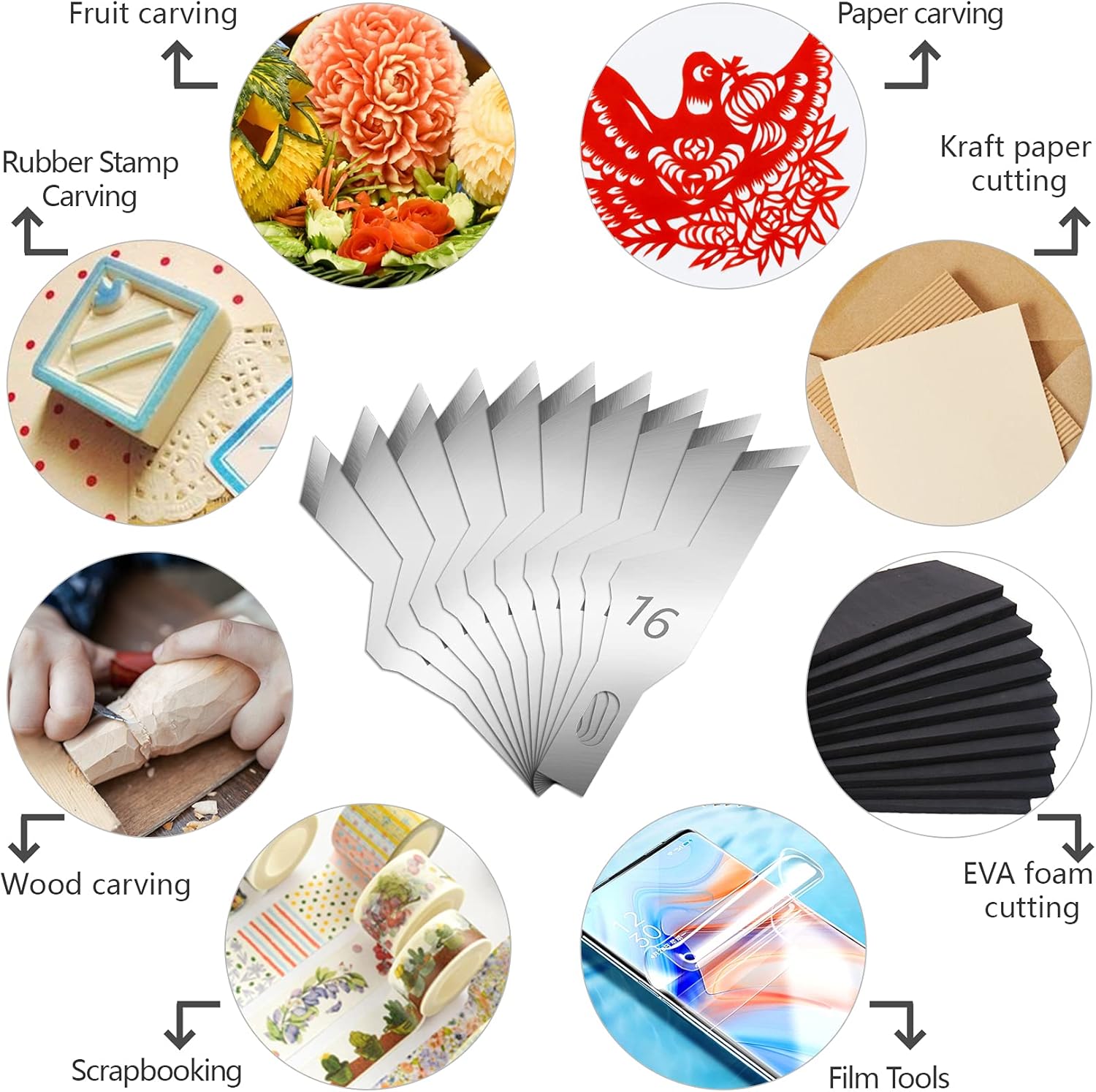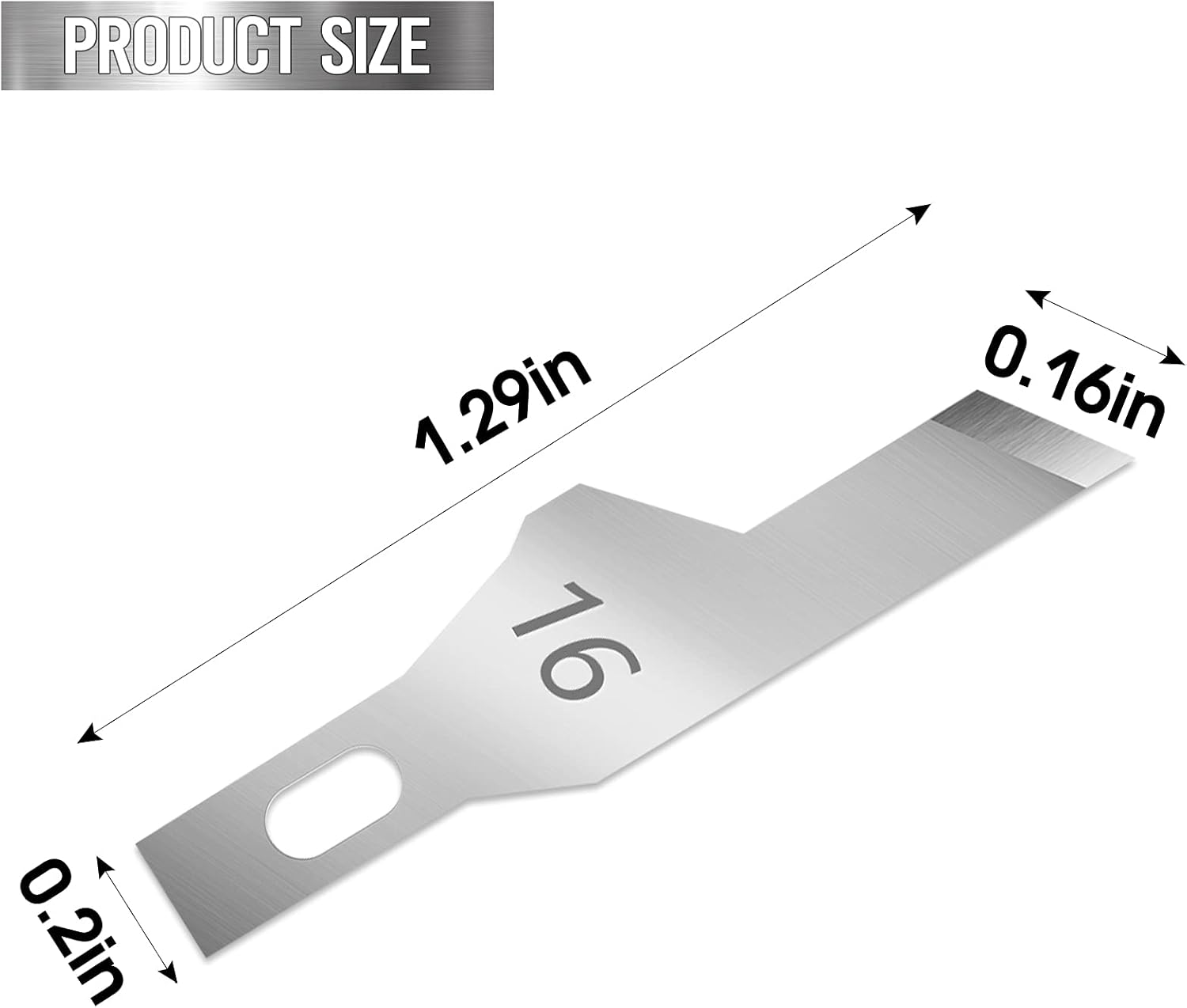 - 【100 PCS #16 Blades Set】You will receive 100 Pack durable and sharp #16 exacto blades. You can create with confidence without worrying that the blades will run out soon. These 100 blades are all placed in a box. The independent packing box makes you easy to carry and safer to use.