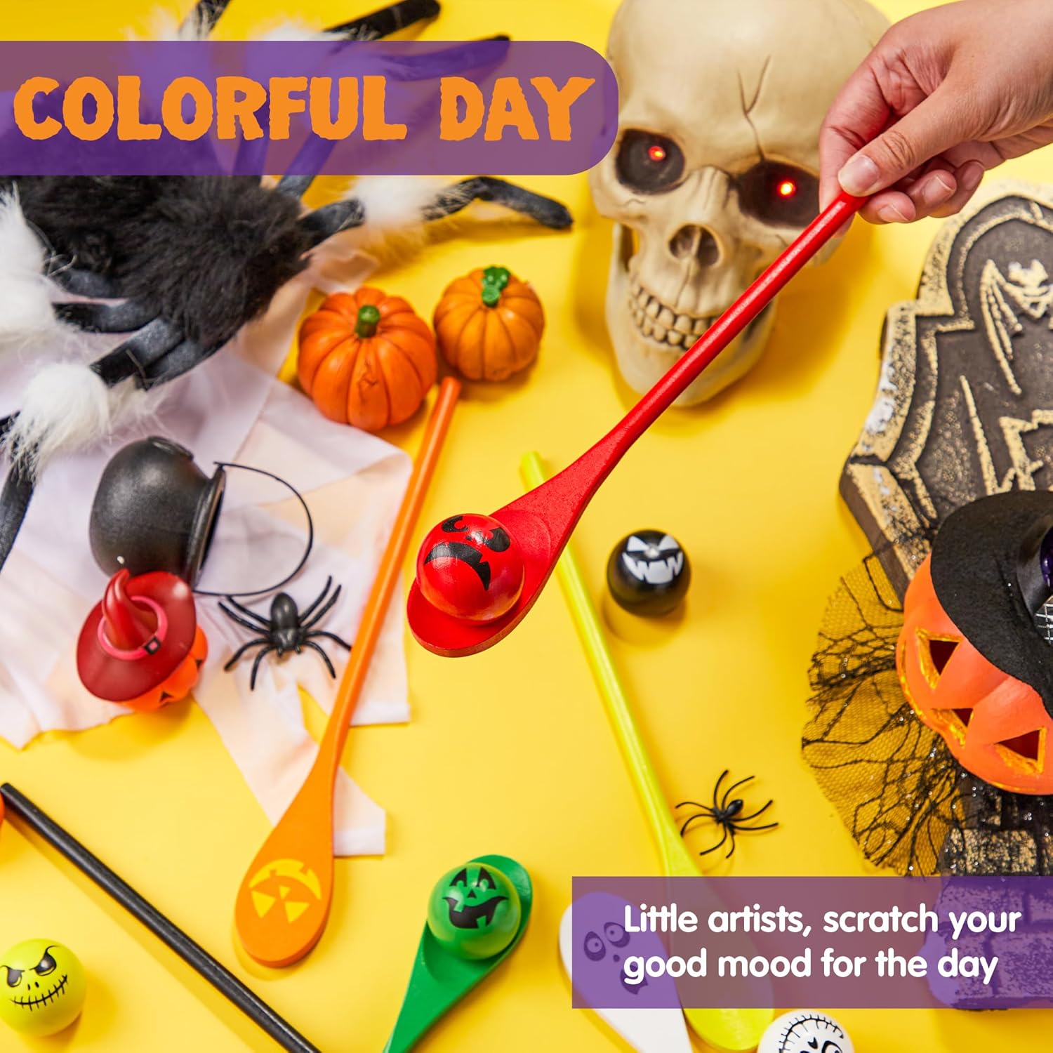 JOYIN 6 Pcs Halloween Egg and Spoon Race Game Set; Eyeballs and Spoons with Assorted Colors for Kids Adults Halloween Outdoor Fun Games, Party Favor Supplies, Classroom Activities