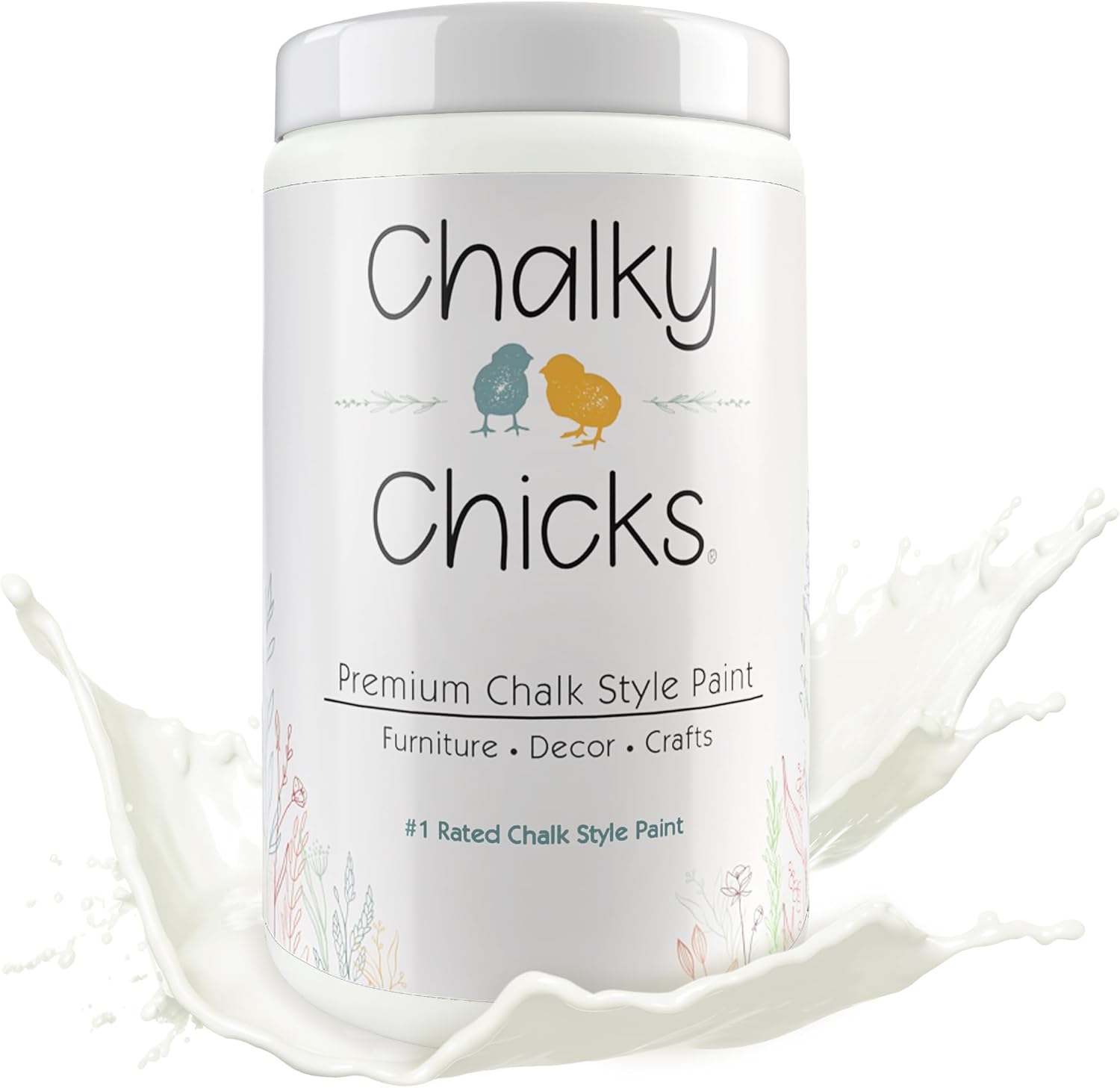 Chalky Chicks All-in-One Chalk Paint for Furniture or Cabinet - 32 Fl Oz - Matte Finish Buttermilk (White) for Metal, Wood Furniture Paint - No Sanding All-in-One for Home Decor & Crafts, USA Made