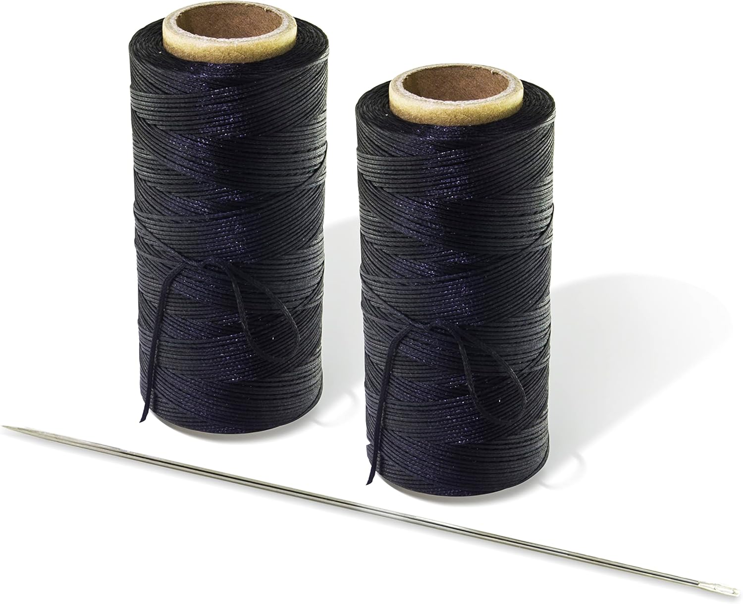 10" Upholstery Large Eye Long Needle Apply to Home or Work Hand Sewing Tapestry Embroidery with 568 Yard 150D 1mm-Width Black Leather Sewing Waxed Thread. (10 inch, 568 Yard)