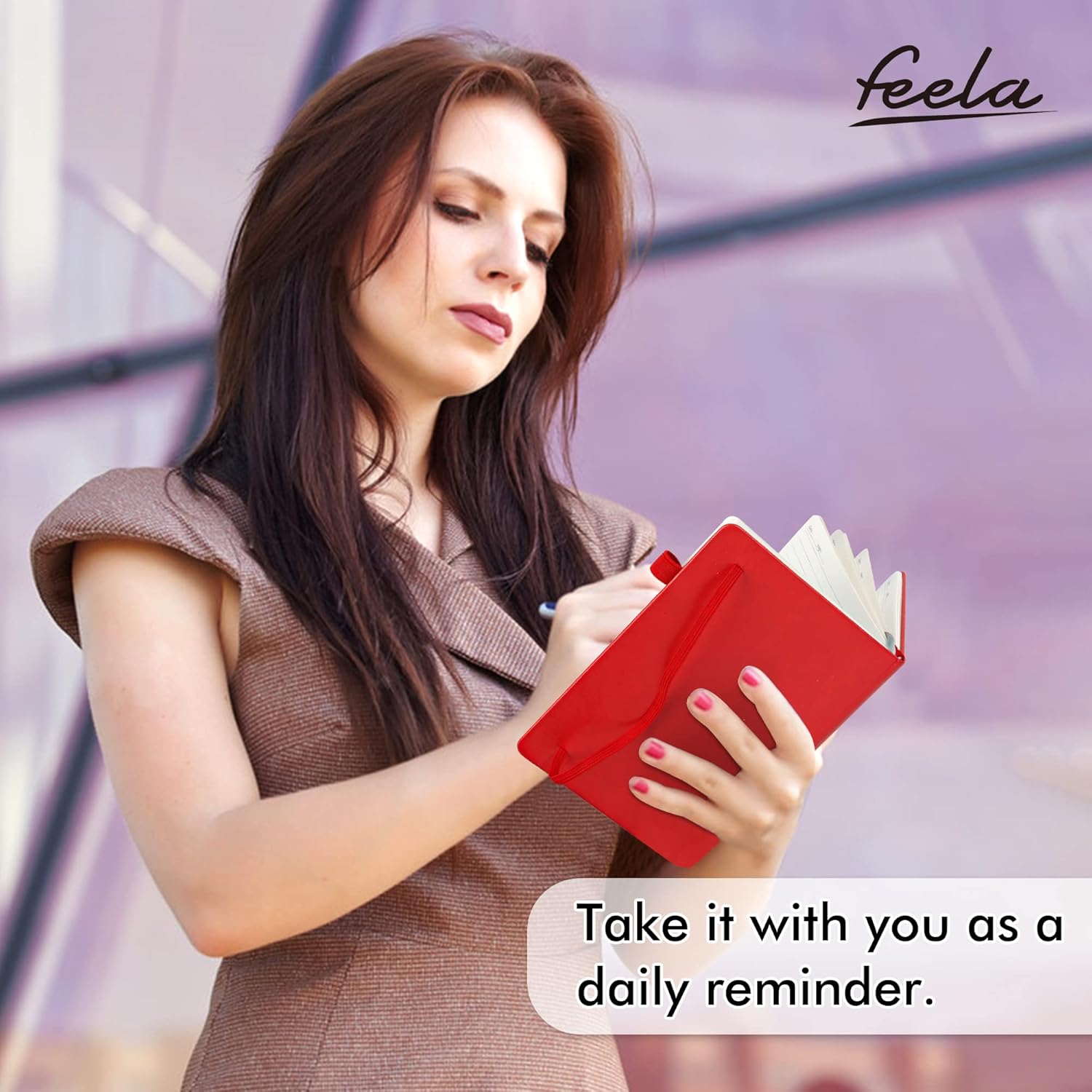 feela 24 Pack Journal Notebook for Work, Business Notebook Bulk Hardcover Lined Writing Journal with Pen Holder for Men Women Note Taking, with 24 Black Pens, 120 GSM, 5.1”x8.3”, A5, Red