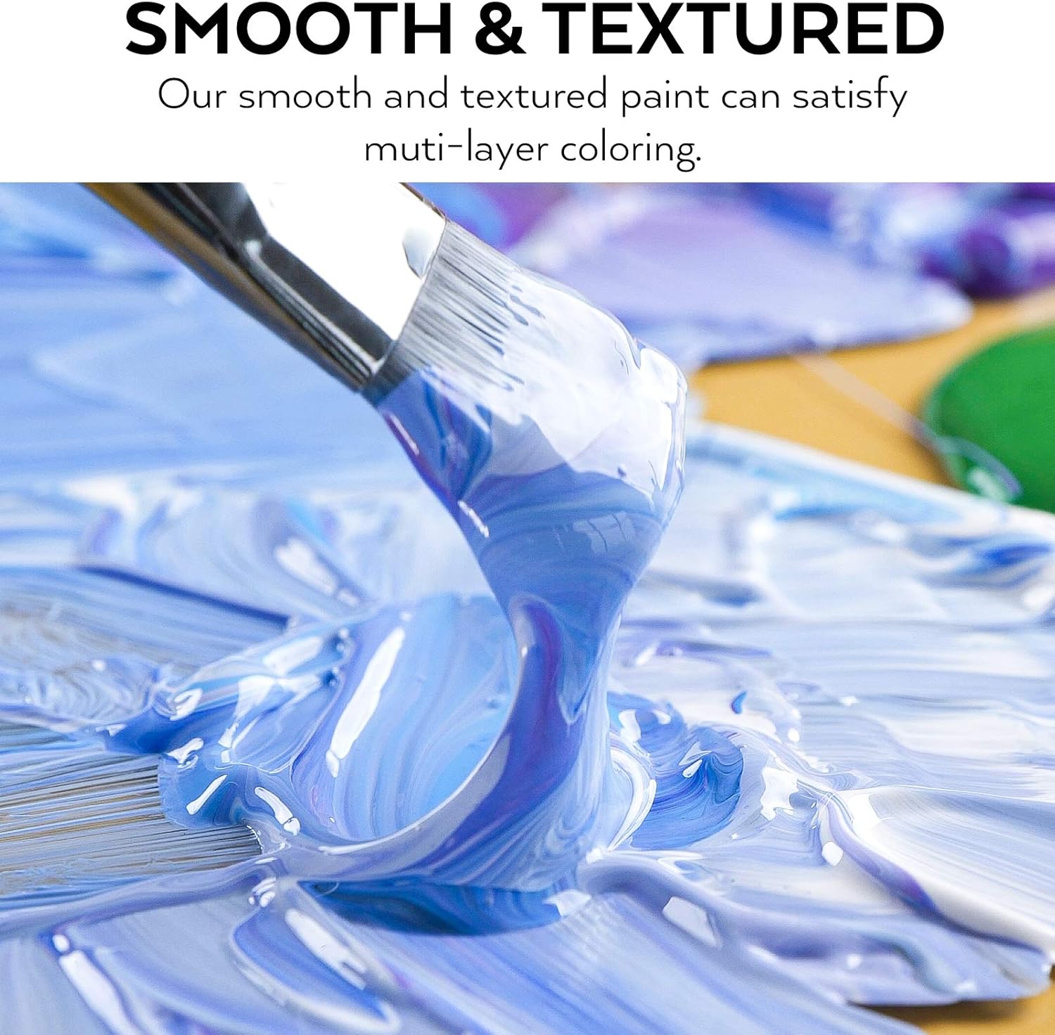 - Smooth & Rich Texture – Professional Quality for Every Stroke. Formulated with premium pigments, our acrylic paints offer a rich, creamy consistency for smooth blending, easy layering, and excellent coverage. Create stunning details or bold strokes with confidence, all while achieving consistent, vivid results on every surface