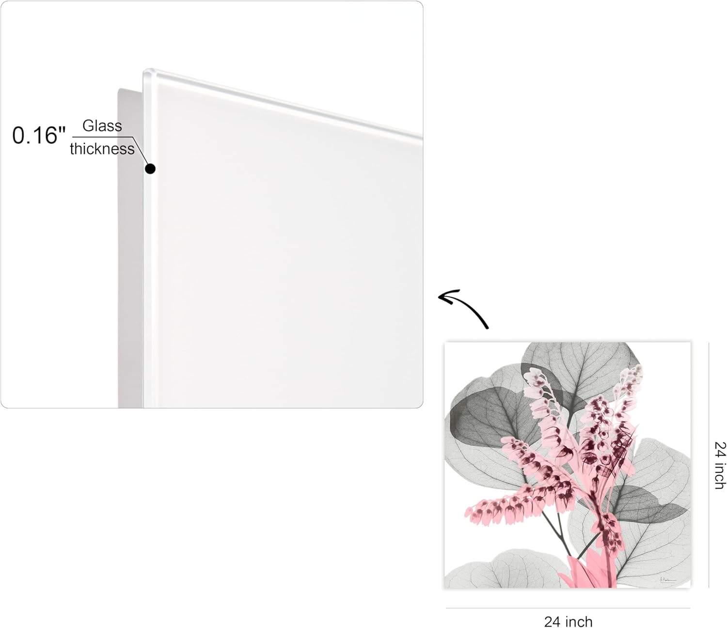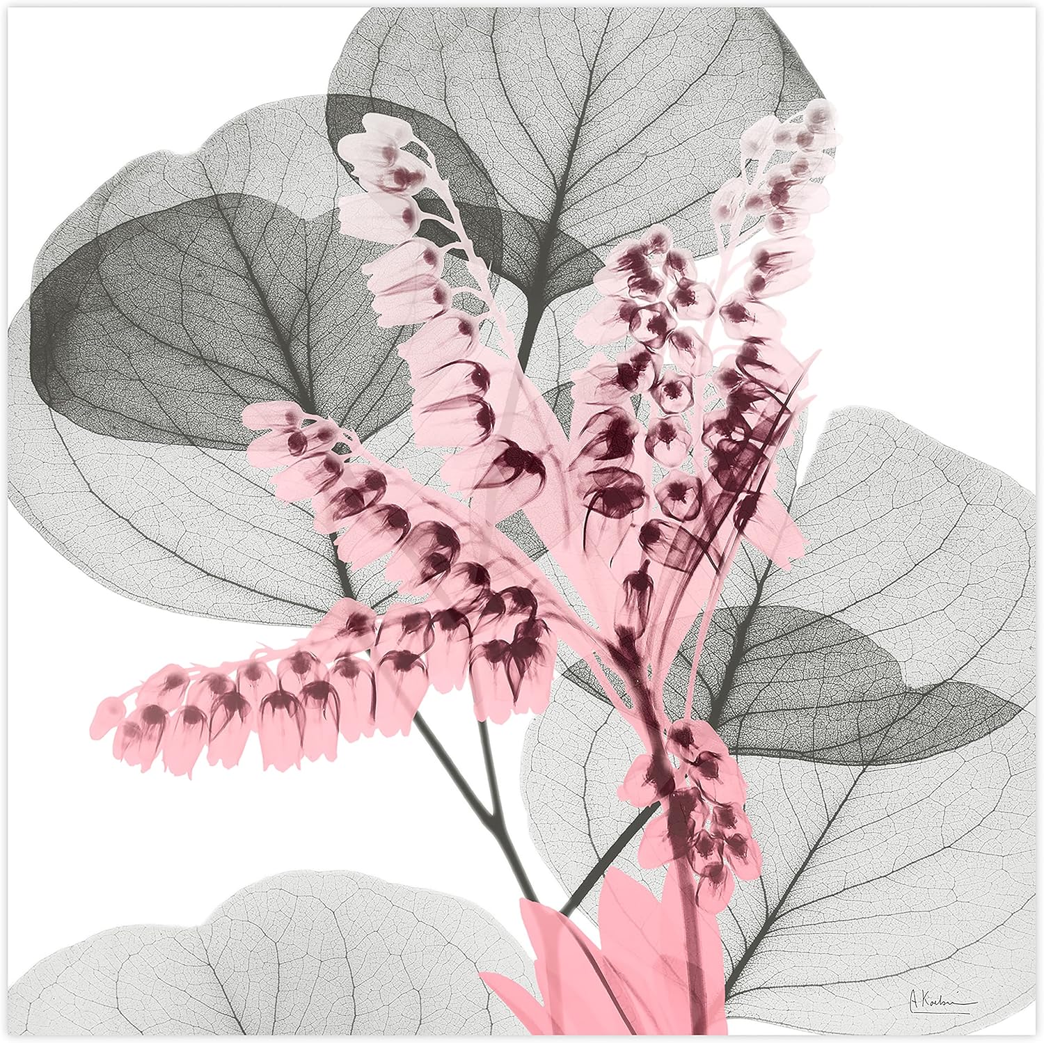 - FLOWER, LILIES FRAMELESS TEMPERED GLASS WALL ART - In collaboration with Albert Koetsier, this beautiful piece displays an X-Ray image of a pink Eucalyptus Bush.