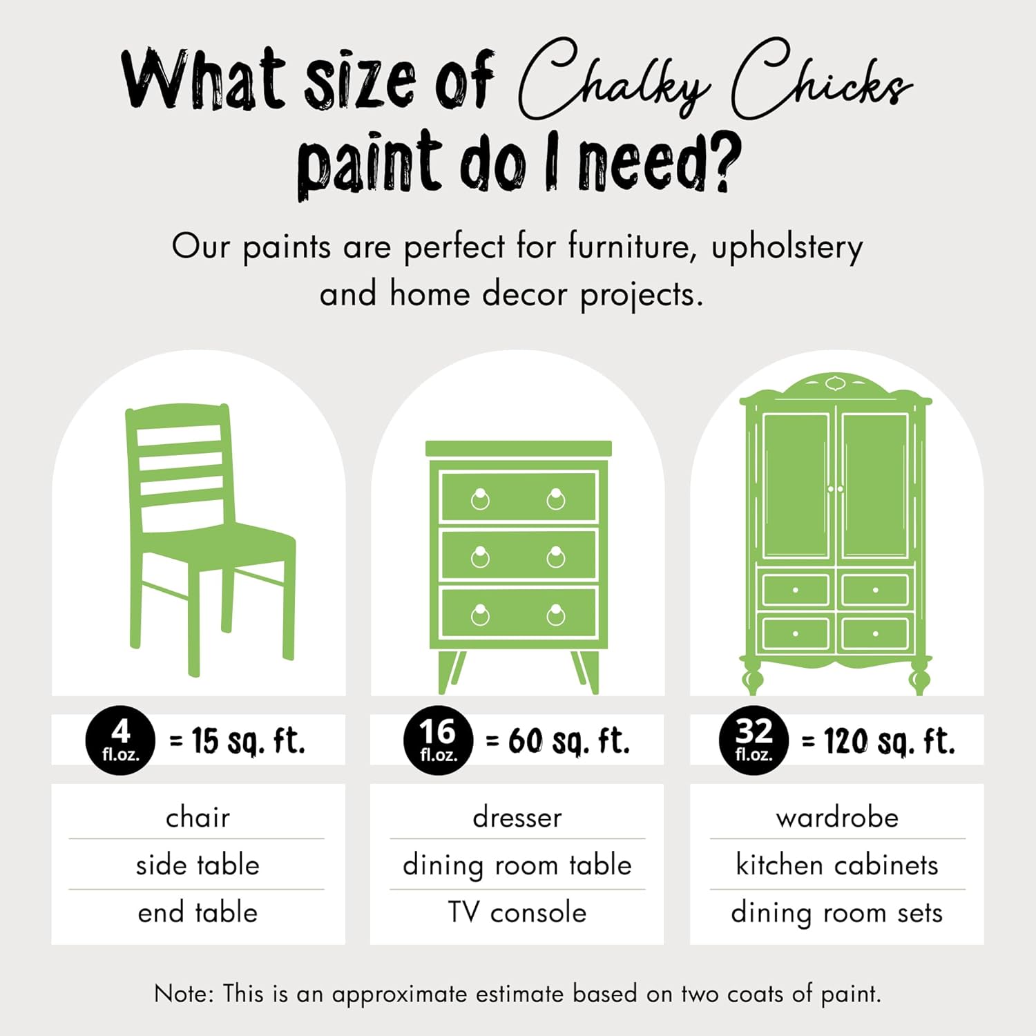 - TRANSFORM FURNITURE AND HOME DECOR WITH EASE: Chalky Chicks will save you time, money, and hassle. No sanding, priming, or multiple coats needed—just start painting your furniture with our cabinet paint no sanding or priming. Our paint is suitable for wood, metal, concrete, textiles, laminate, and more. Whether you prefer navy blue chalk paint, light blue paint, or green chalk paint, our chalk paint for furniture transforms any space with ease, making it ideal for DIY projects & craft painting.