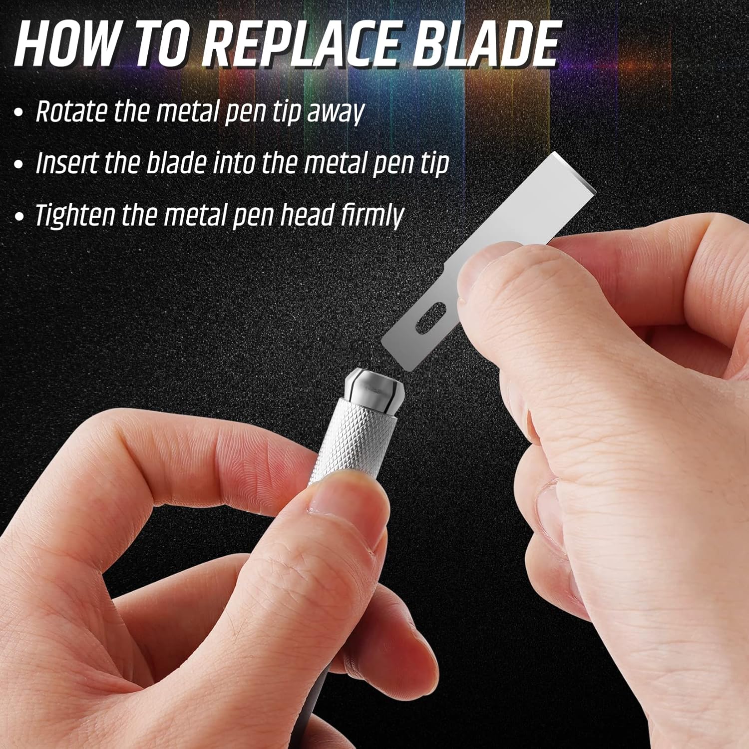 - 【Multipurpose】The craft knife set can be used in various precision cutting activities, such as architecture modeling, scrapbooking, stencil, clay, fondant, rubber stamps, paper, foam, wood, carving, applying mobile phone film or car windown tint film