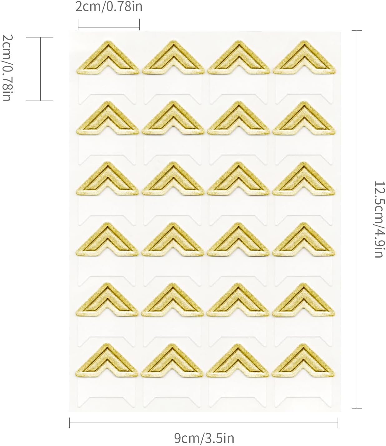 - Size Color: 240 shiny gold photo corners, each sticker's size is 2 x 2 cm (0.79 x 0.79 inch), each sheet size is 12.5 x 9 cm (6.3 x 4.1 inch)