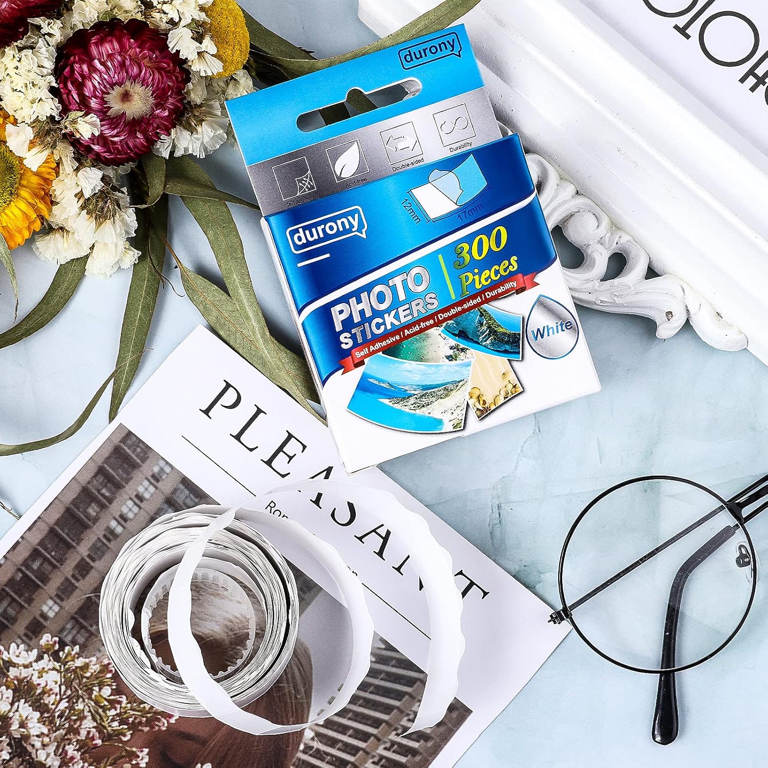 Durony 300 Pieces Photo Sticker White Double-Sided Self Adhesive Photo Tapes for Pictures DIY Photo Album Journal