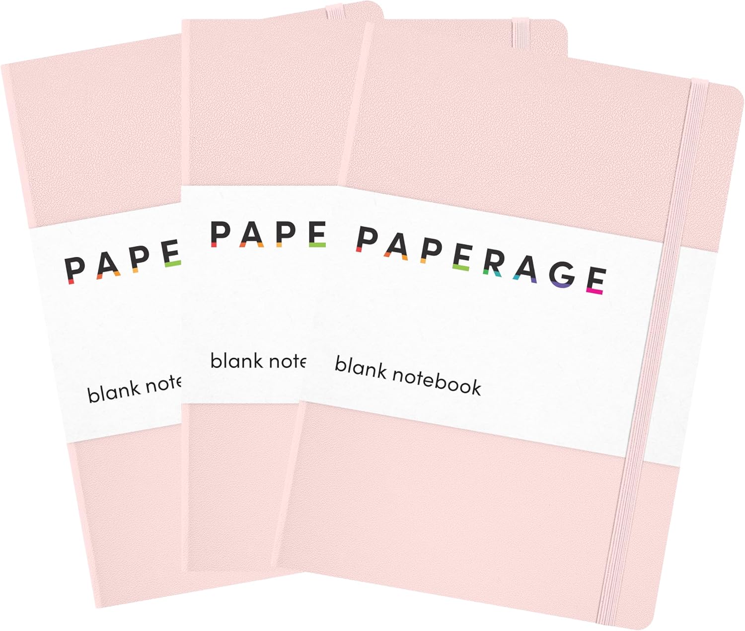 PAPERAGE Lined Journal Notebook, 3 Pack, (Blush), 160 Pages, Medium 5.6 in x 8 in - 100 GSM Thick Paper – Hardcover Journaling Notebook for Work, School & Note Taking