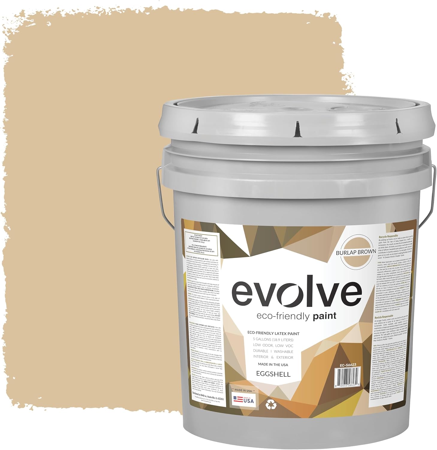 EVOLVE Paint & Primer: Environment-friendly, Low Sheen with One-coat Coverage for Interior & Exterior surfaces (Burlap Brown, 5-Gallon)