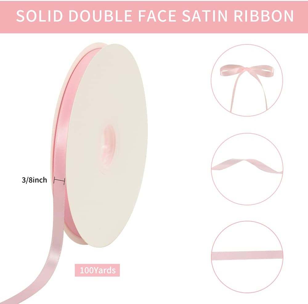- 【SIZE】 - High-grade single face solid satin ribbons 3/8 inch(1cm)wide/spool, this ribbon comes in a convenient 100 yards packages so that you have plenty for decorating.