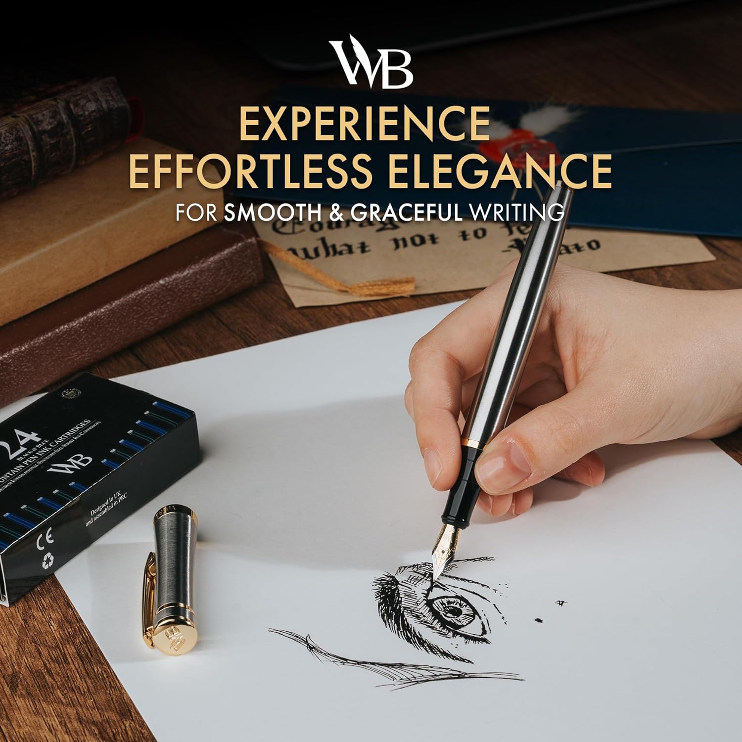 - ✒️Discover The All-inclusive Refillable Fountain Pen Set- Includes luxurious Fountain pen, Ink converter, 24 Pack Ink cartridges, Premium Leather Gift box - ready to be gifted. Included with every order is a complete instruction booklet for your Wordsworth and Black Pen Set. All the information you'll need to get started using and enjoying your luxurious writing tool will be right at your fingertips!