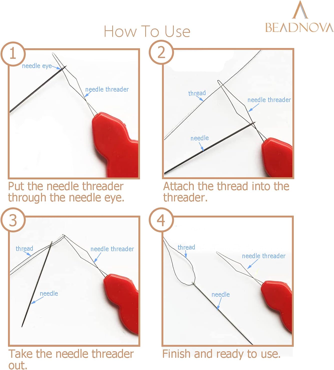- EASY TO USE: Insert the wire loop on the needle threader through the eye of the needle. Insert the thread tail through the wire loop at least a few inches in length. Fold the tail over and hold both lengths of thread together. Pull the wire loop out from the eye of the needle and ensure the thread tails comes through with it.