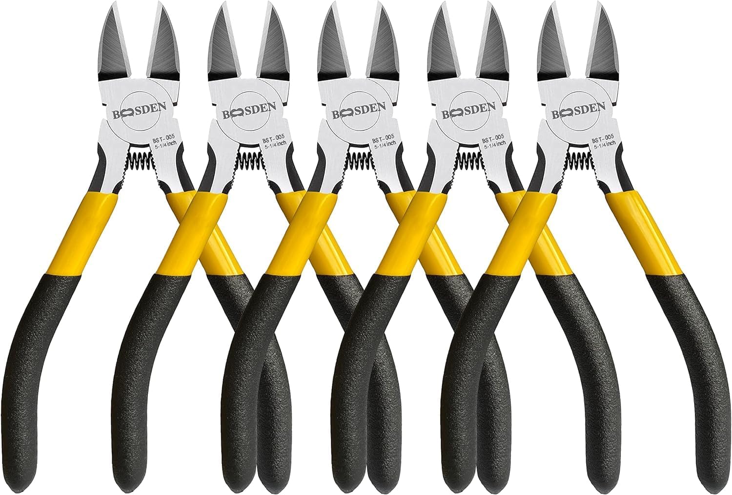 BOOSDEN 5" Wire Cutters, 5 Pack, Precision Cutting Pliers, Ultra Sharp Wire Snips Wire Clippers, Spring Loaded Flush Cutter, Diagonal Cutting Pliers for Jewelry Making Crafting, Wire Cutters Set