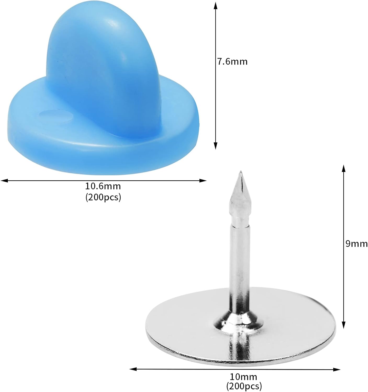 400pcs PVC Rubber Butterfly Clutch Pins Tie Tacks Blank for Uniform Badges Backing Holder Clasp Lapel Enamel Pins(200 Sets),Blue