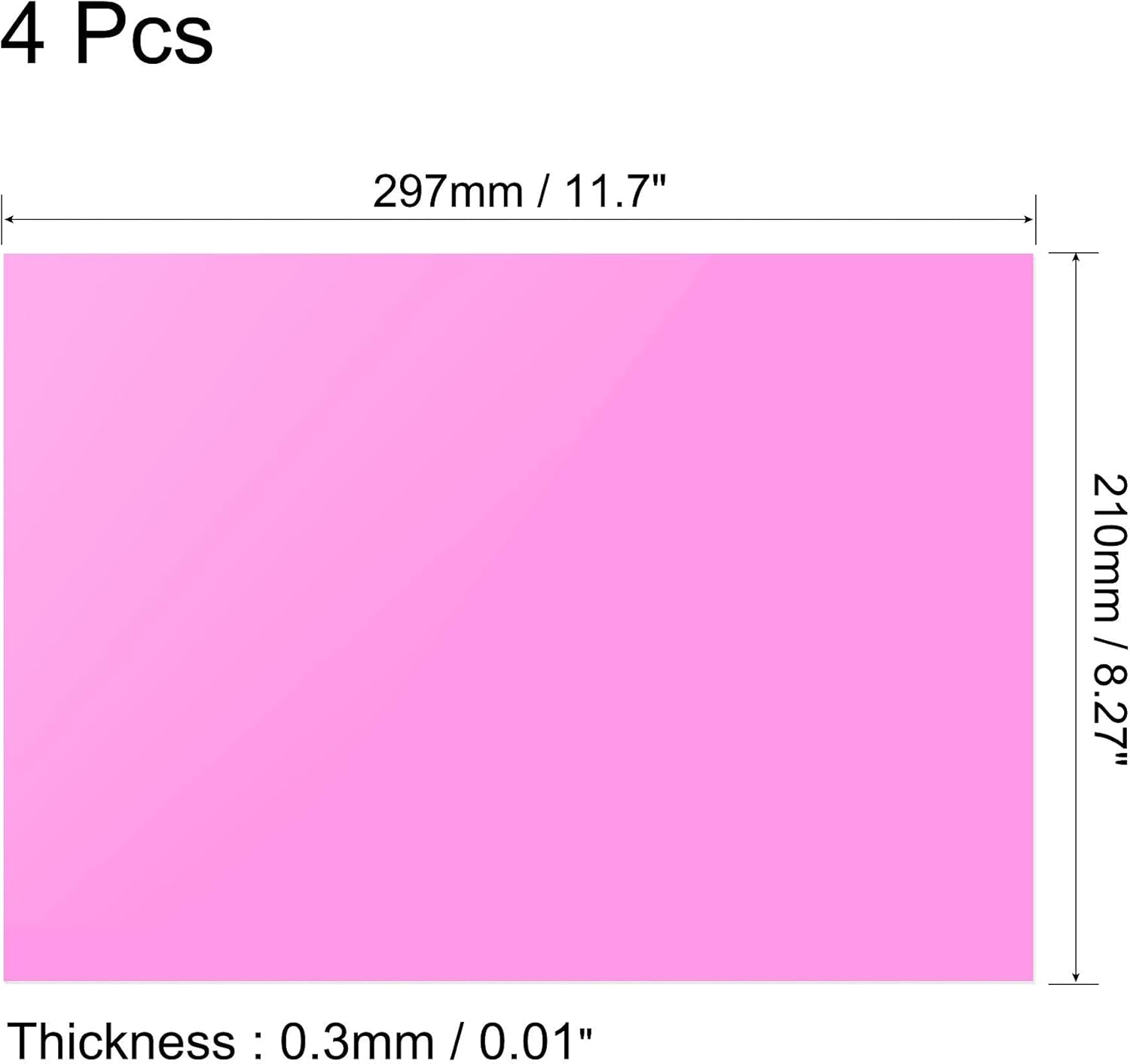uxcell 4Pcs A4 Gel Light Lighting Filter Overlay Transparent Color Correction Plastic Vinyl PVC Sheets Photography Television Pink,0.3mm