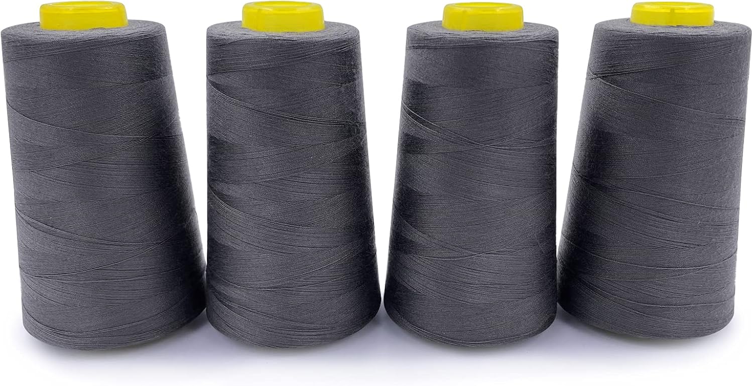 Tortoise 4 Cones of 3000 Yards Each Spool Thread for All Purpose, Serger, Overlock, Quilting, Sewing Machine - 100% Polyester, 40S/2 Dark Gray