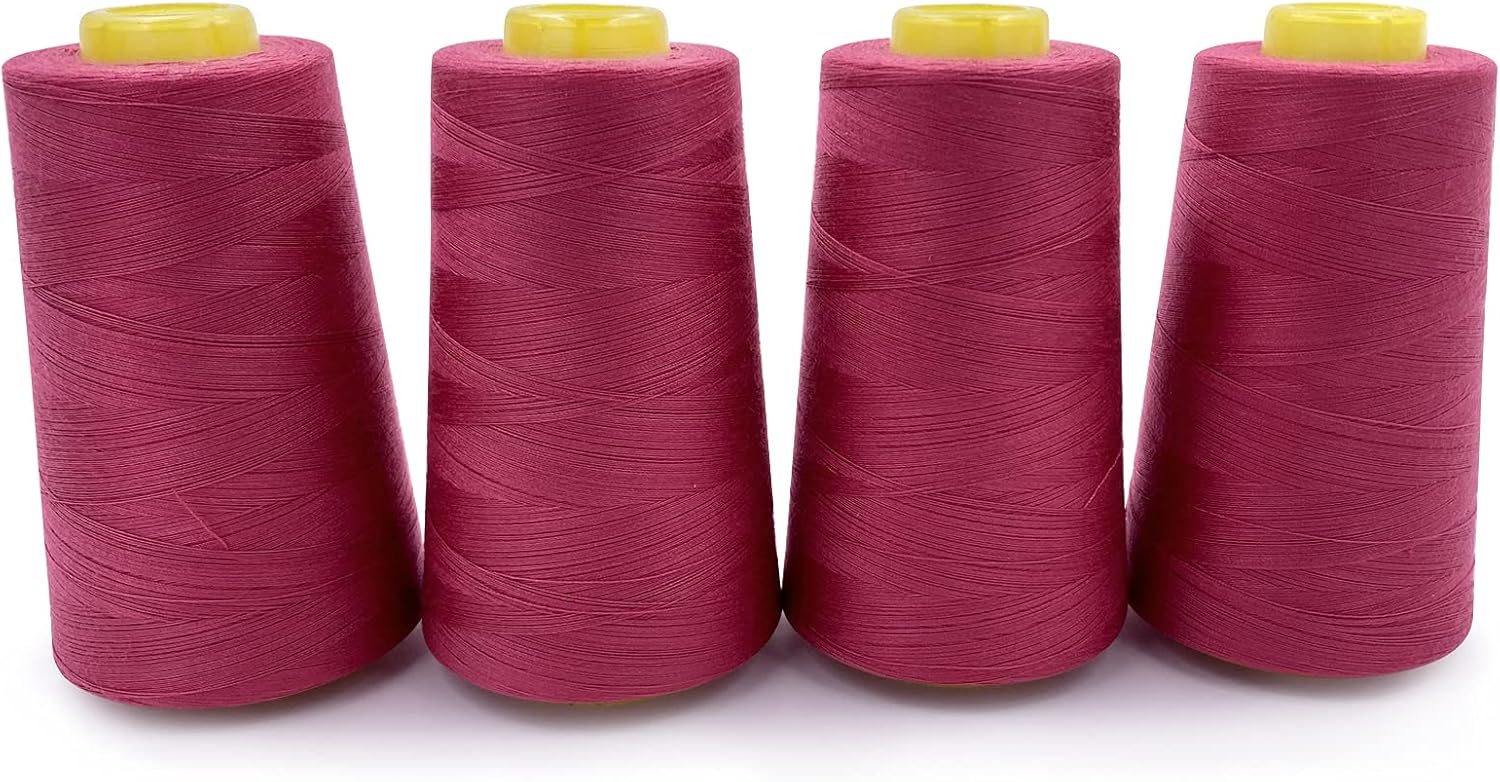 Tortoise 4 Cones of 3000 Yards Each Spool Thread for All Purpose, Serger, Overlock, Quilting, Sewing Machine - 100% Polyester - Fuschia