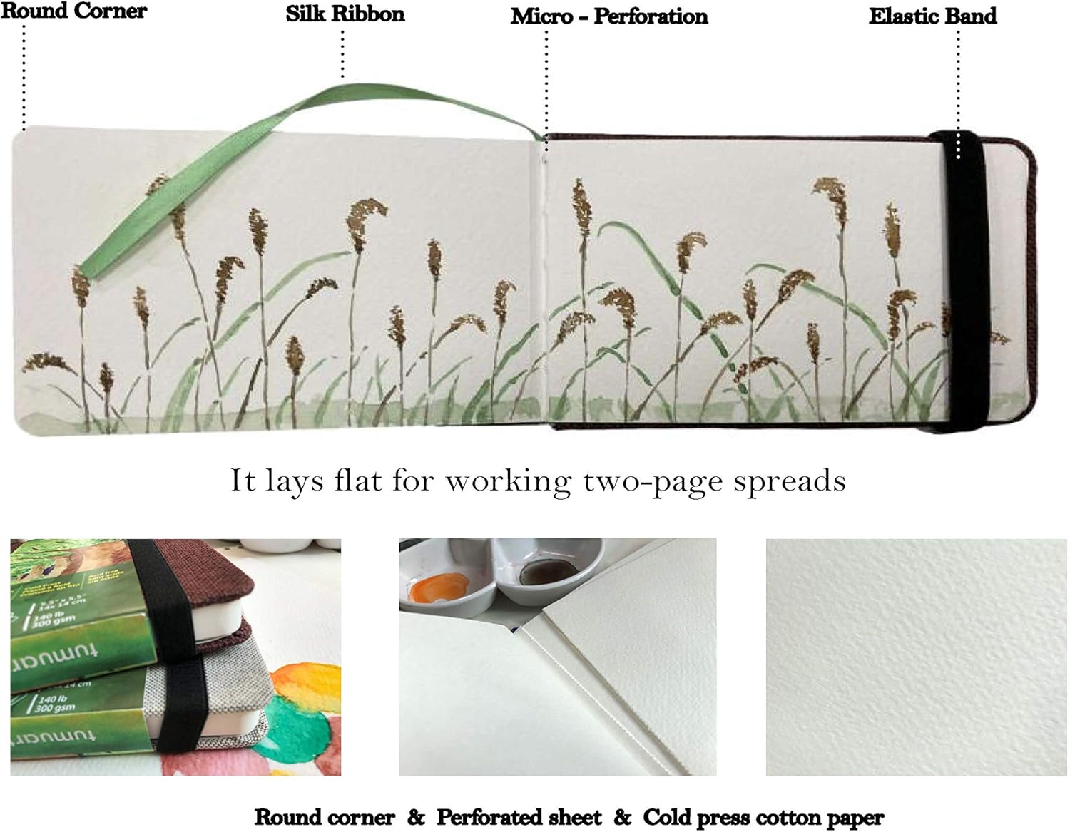 - Round Corner And Hardbound:round corner protects you from accidental paper cuts,sturdy and durable heavy board with linen covers support you to paint and draw,the book lays flat for working two-page spreads