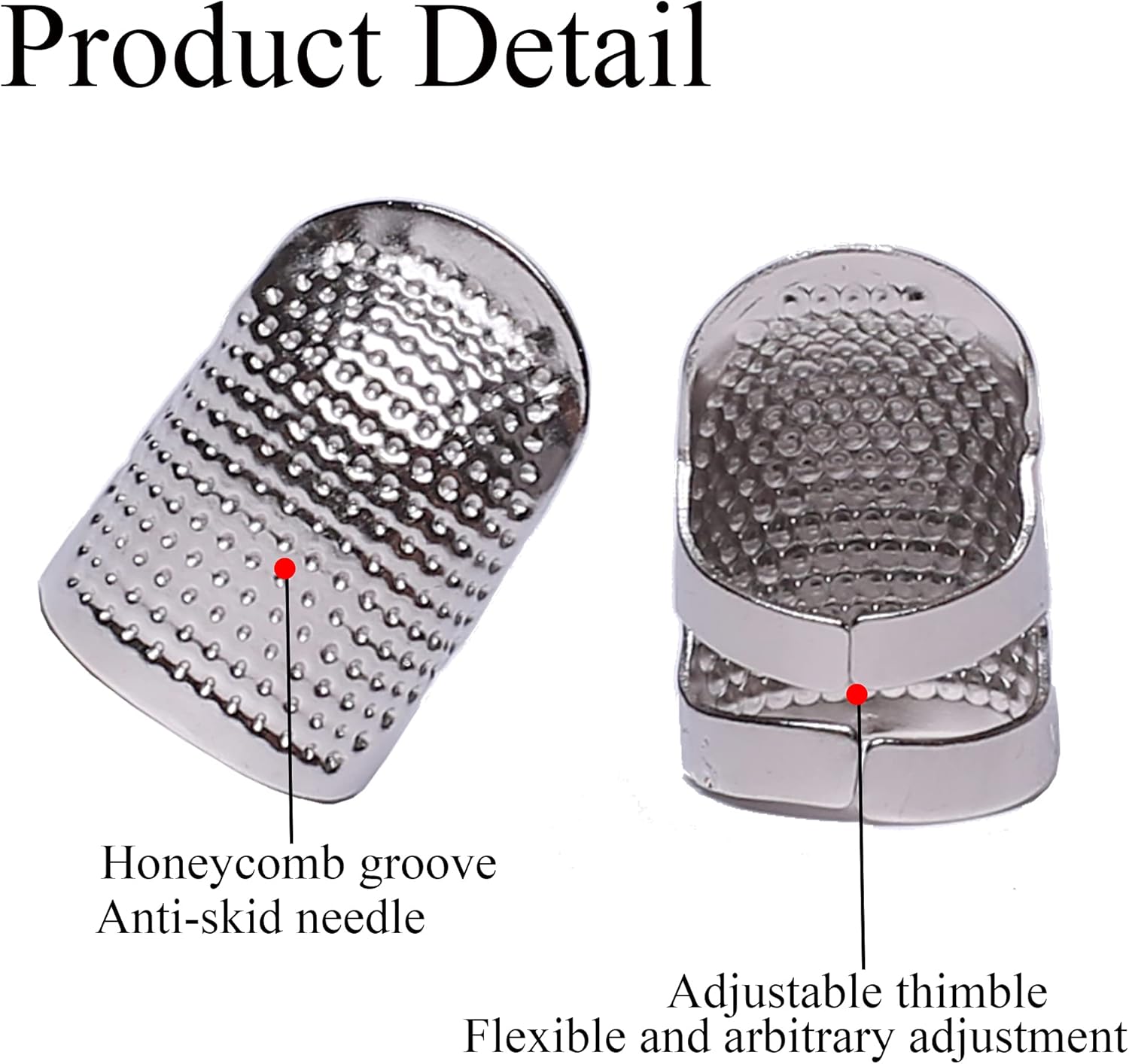 J.CARP 4Pcs Sewing Thimble, Metal Silvery Sewing Thimble Finger Protector, Adjustable Finger Shield Ring Fingertip Thimble Sewing Quilting Craft, Accessories DIY Sewing Tools (2 Sizes, S/M)