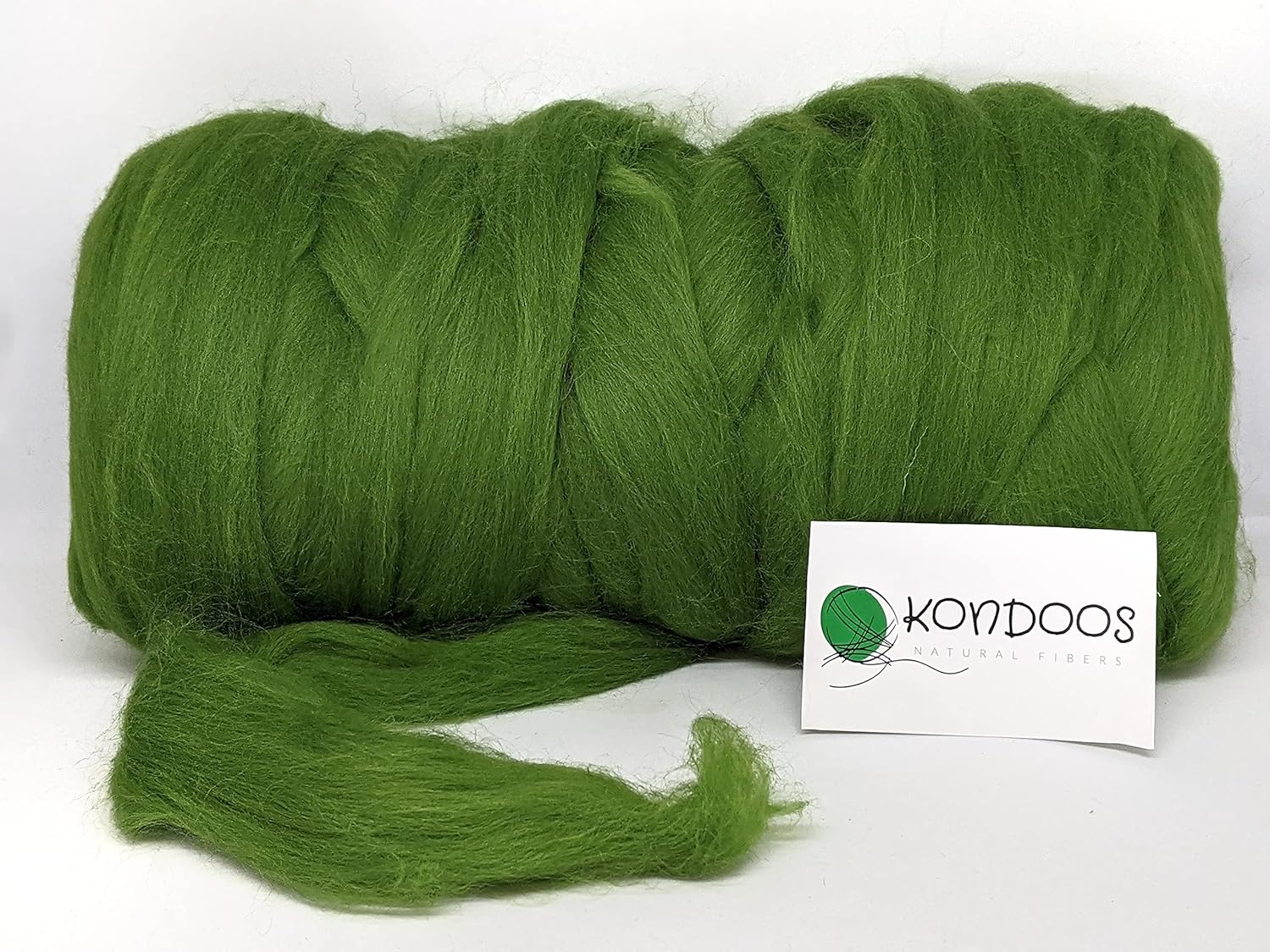 Kondoos Colored Natural wool roving, 1 lb. Best wool for needle felting, wet felting, handcrafts and spinning. (Grass green, 1 lb)