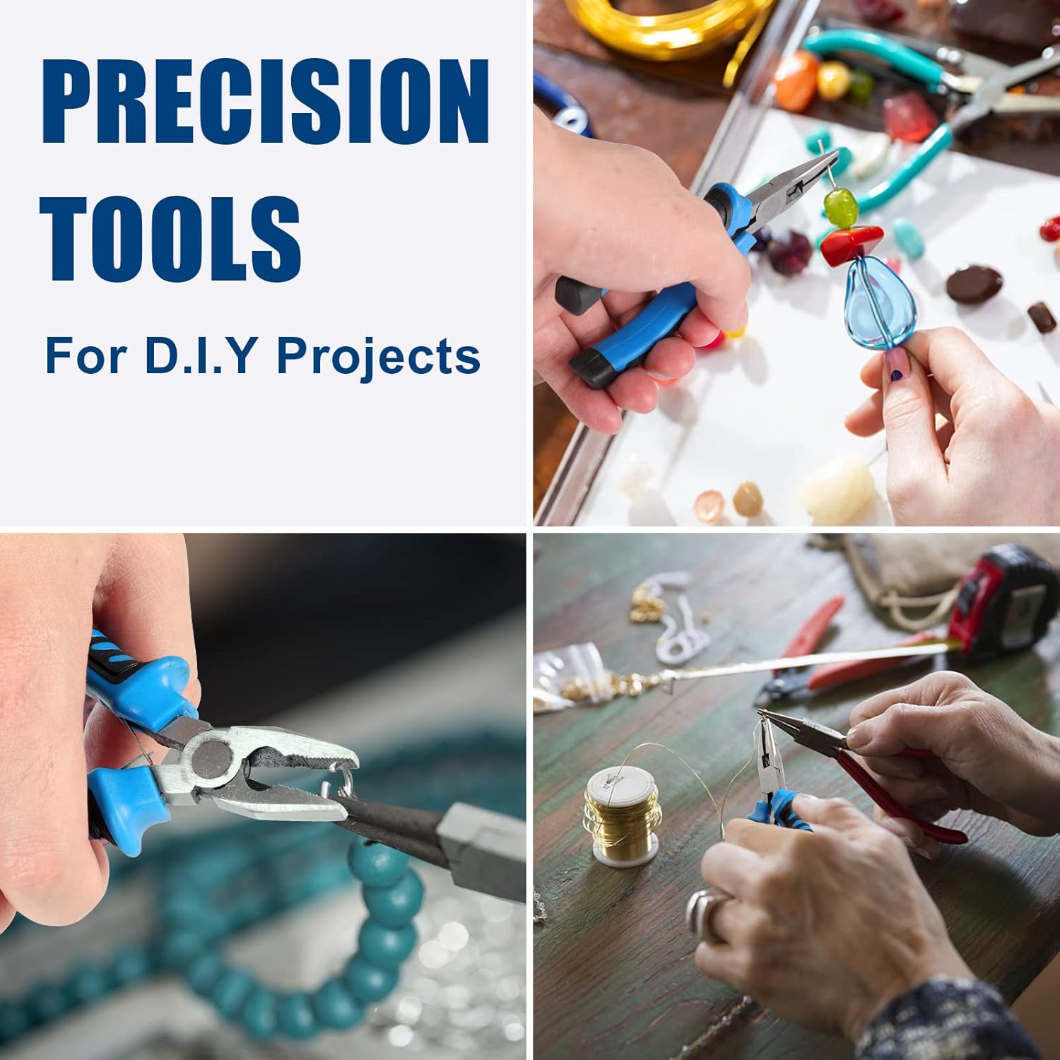 - 【MULTIPLE PLIERS】 This mini pliers set includes 6-inch mini needle nose pliers, 5-inch linesman pliers, 5-inch mini long nose pliers, 5-inch mini bent nose pliers, 4.5-inch diagonal pliers and 4-inch end cutting pliers. The 6 piece pliers tool set helps to fix electronic tools and is suitable for crafts making.