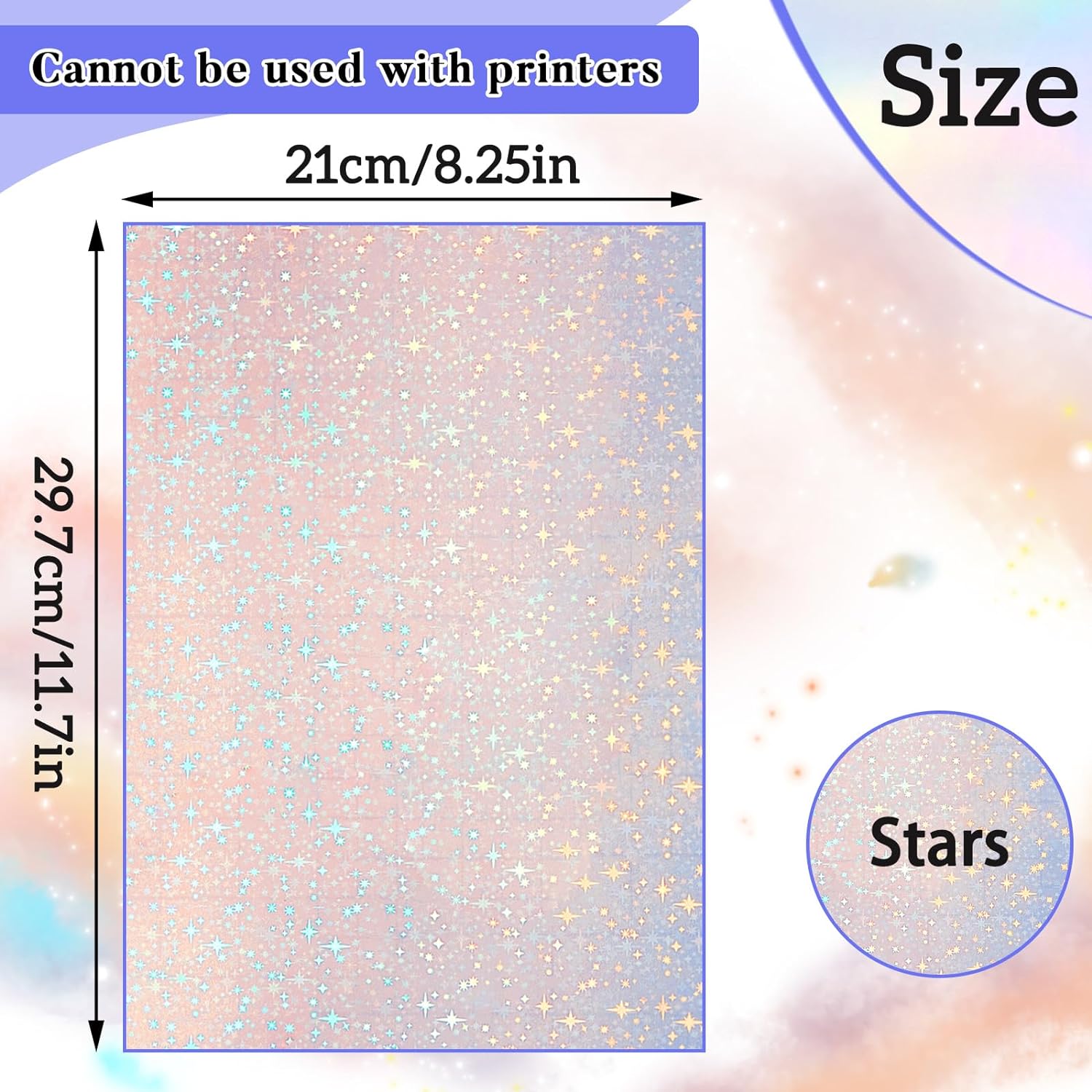- What you receive: the package contains 36 sheets of transparent holographic films; These A4 holographic sticky paper sheets are in A4 size, namely 11.7 x 8.3 x 0.2 inches, enough to meet your different needs; Please note that these films are not printable, do not use them on printers