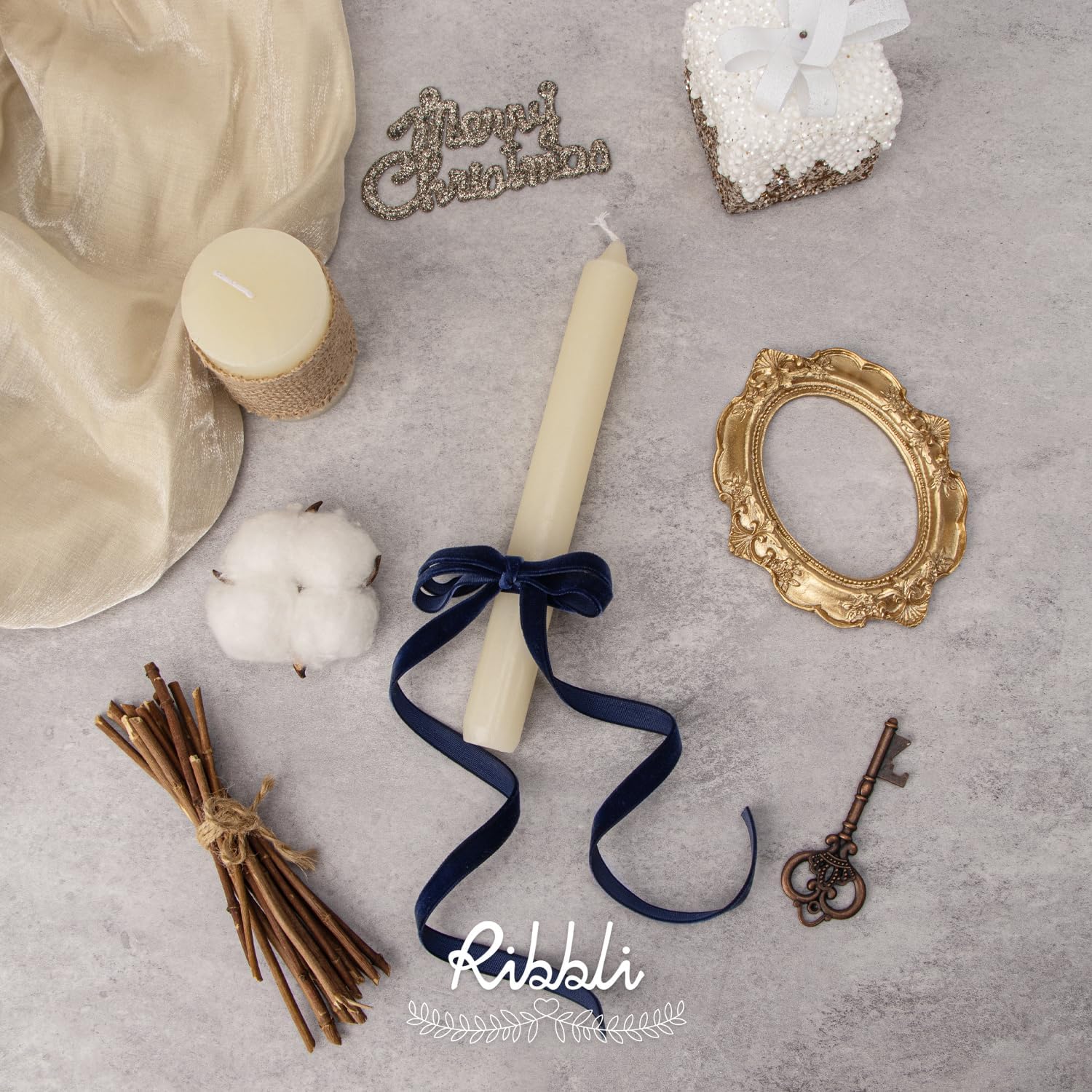 Ribbli Polyester Navy Velvet Ribbon,3/8 Inches Continuous10-Yard Spool,Christmas Ribbon for Gift Wrapping,Floral Bouquets, Home Decor