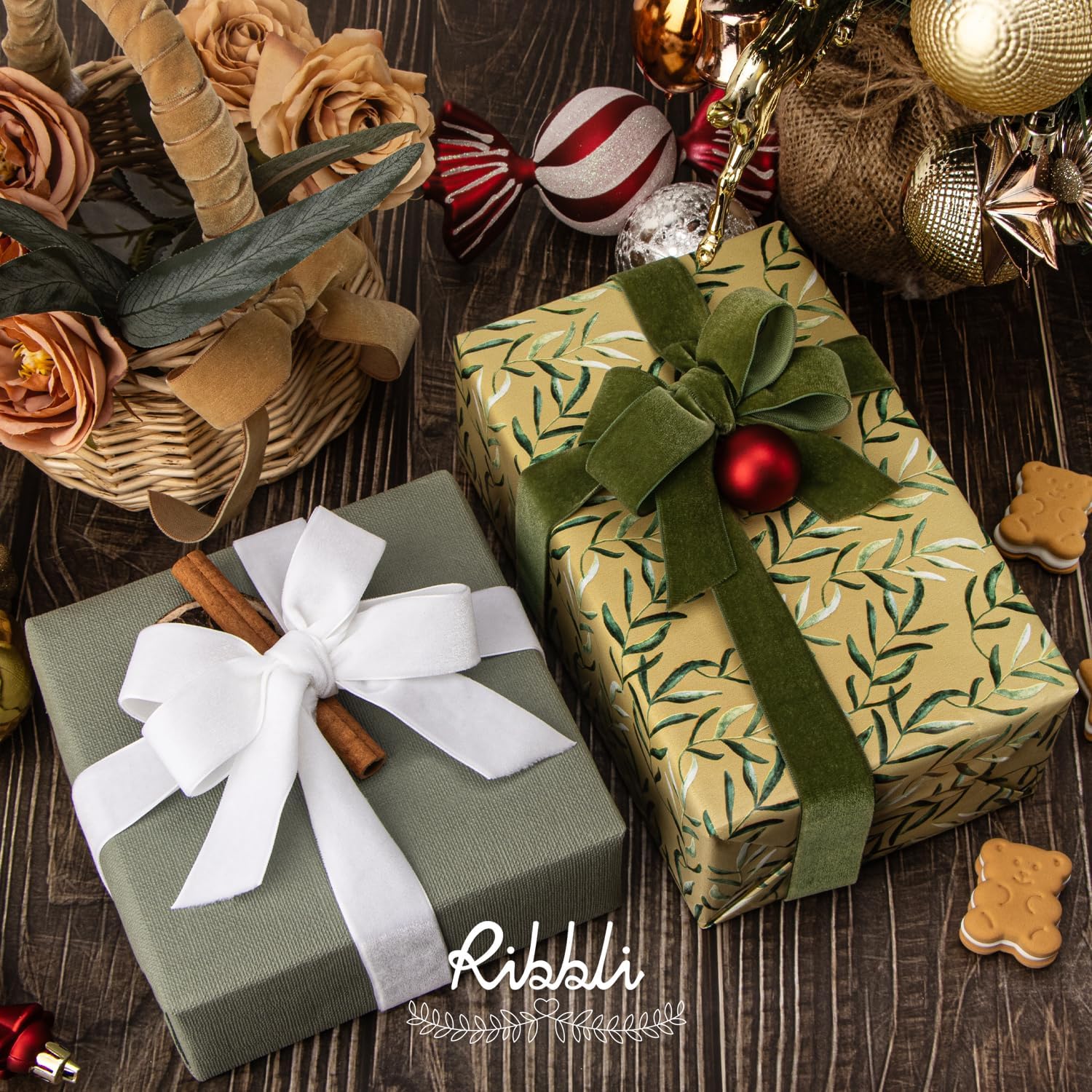 Ribbli Polyester White Velvet Ribbon,1 Inches Continuous10-Yard Spool,Christmas Ribbon for Gift Wrapping,Floral Bouquets, Home Decor