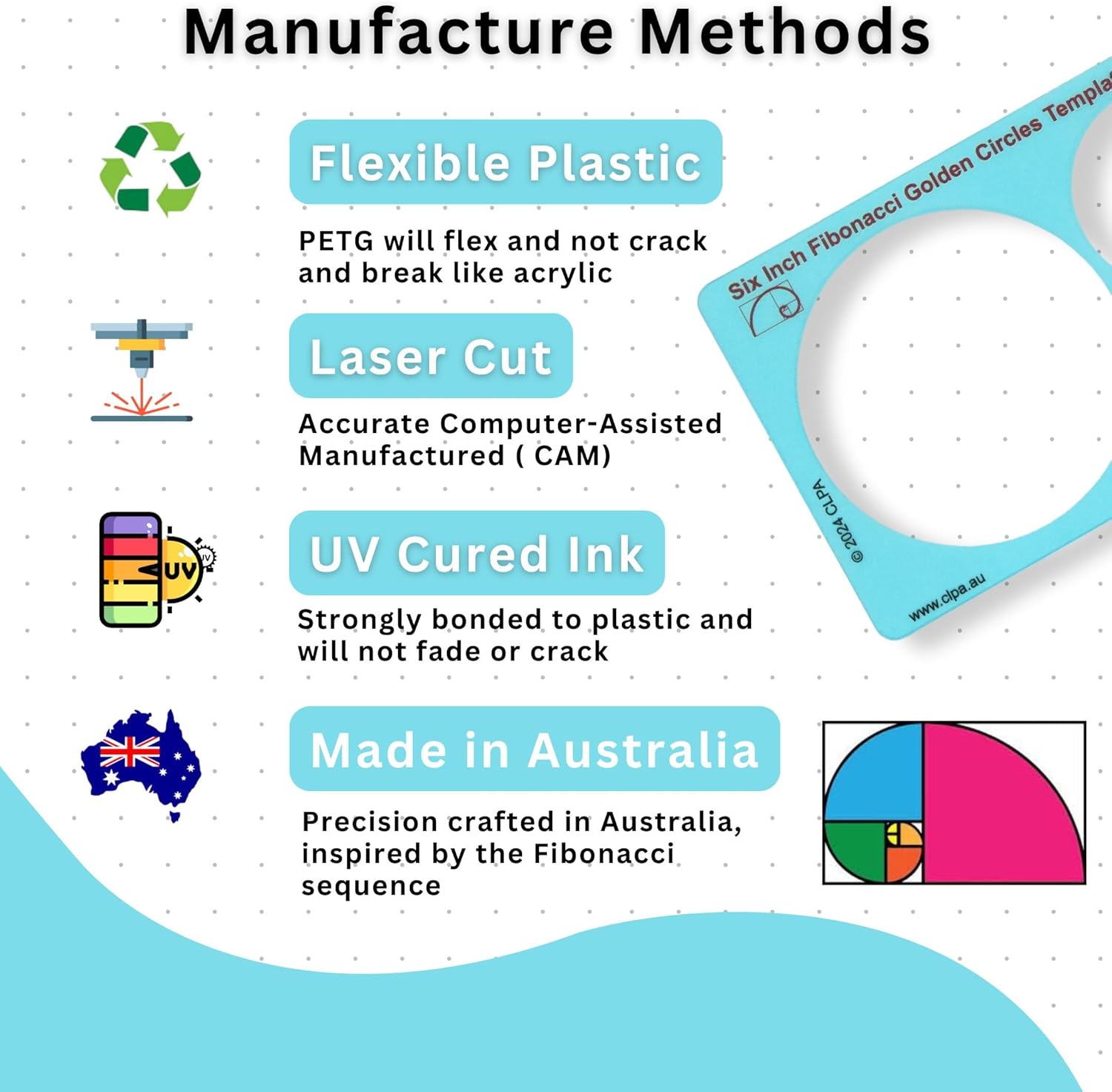 - Multi-Functional Drawing Aid: As a square stencil for painting or a square ruler for drawing, this tool offers unmatched versatility. Its clear markings and durable design make it a staple for architects, artists, and students alike. The Golden Squares are 3.09" (78.5mm), 1.91" (48.5mm), 1.18" (30.0mm), 0.73" (18.5mm), 0.45" (11.5mm), and 0.28" (7.0mm). and is perfectly matched to the Golden Fibonacci Circle template.