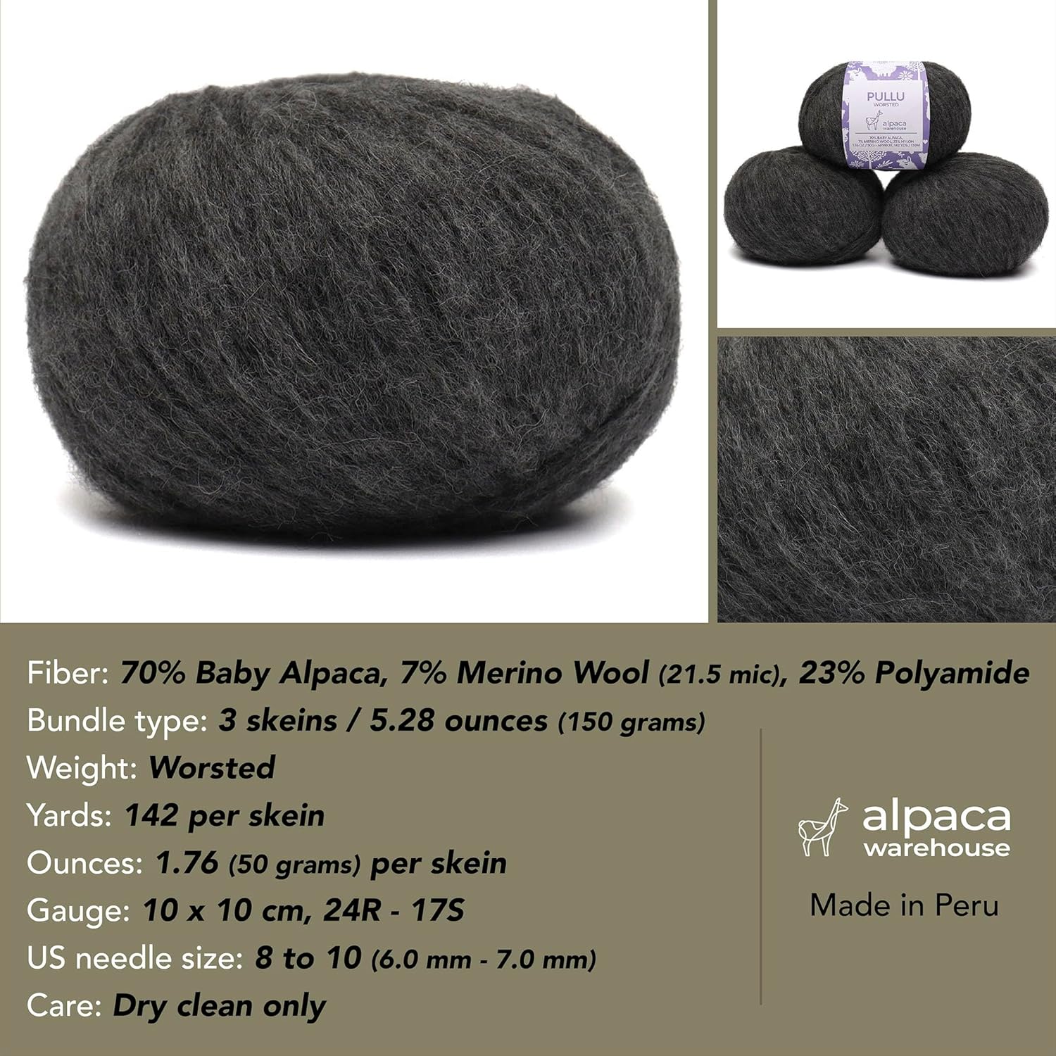 Pullu - Baby Alpaca Merino Wool Yarn Set of 3 Skeins (150 Grams) Worsted Weight - Sourced Directly from Peru - Heavenly Soft and Perfect for Knitting and Crocheting (Gray)